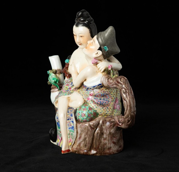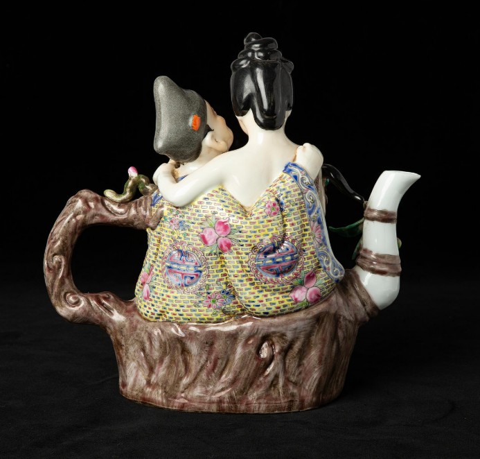 A Chinese porcelain jug, ekivok/figural, painted in enamel colours, imprinted mark.
