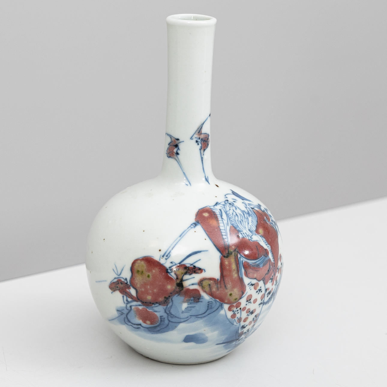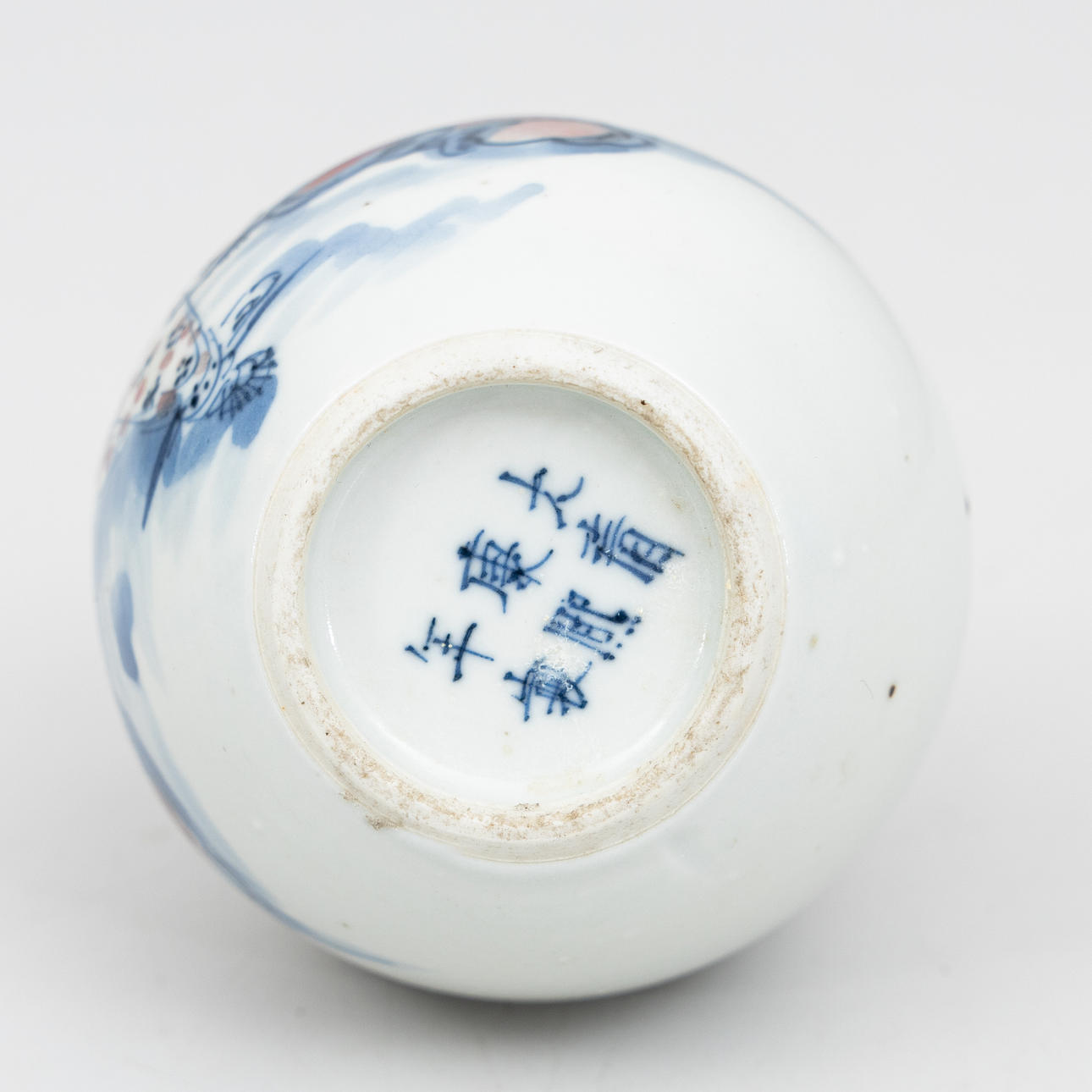 Underglaze blue and red painting with decoration of dancing man. Height approx. 13 cm. Condition Minor wear and tear.