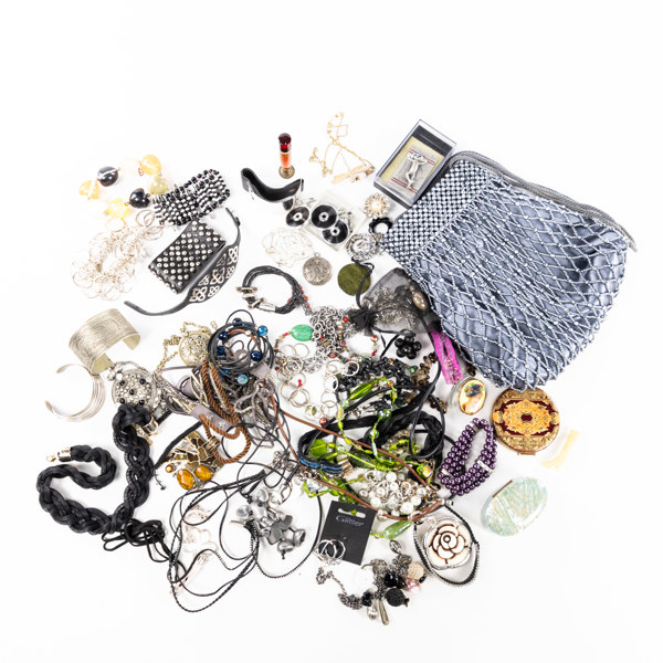 Jewelry, 11 pieces, silver, including amber, weight 113.5 grams Jewelry, thimble, 5 pieces, silver, weight 53.7 grams Jewelry, costume jewelry, a lot*2