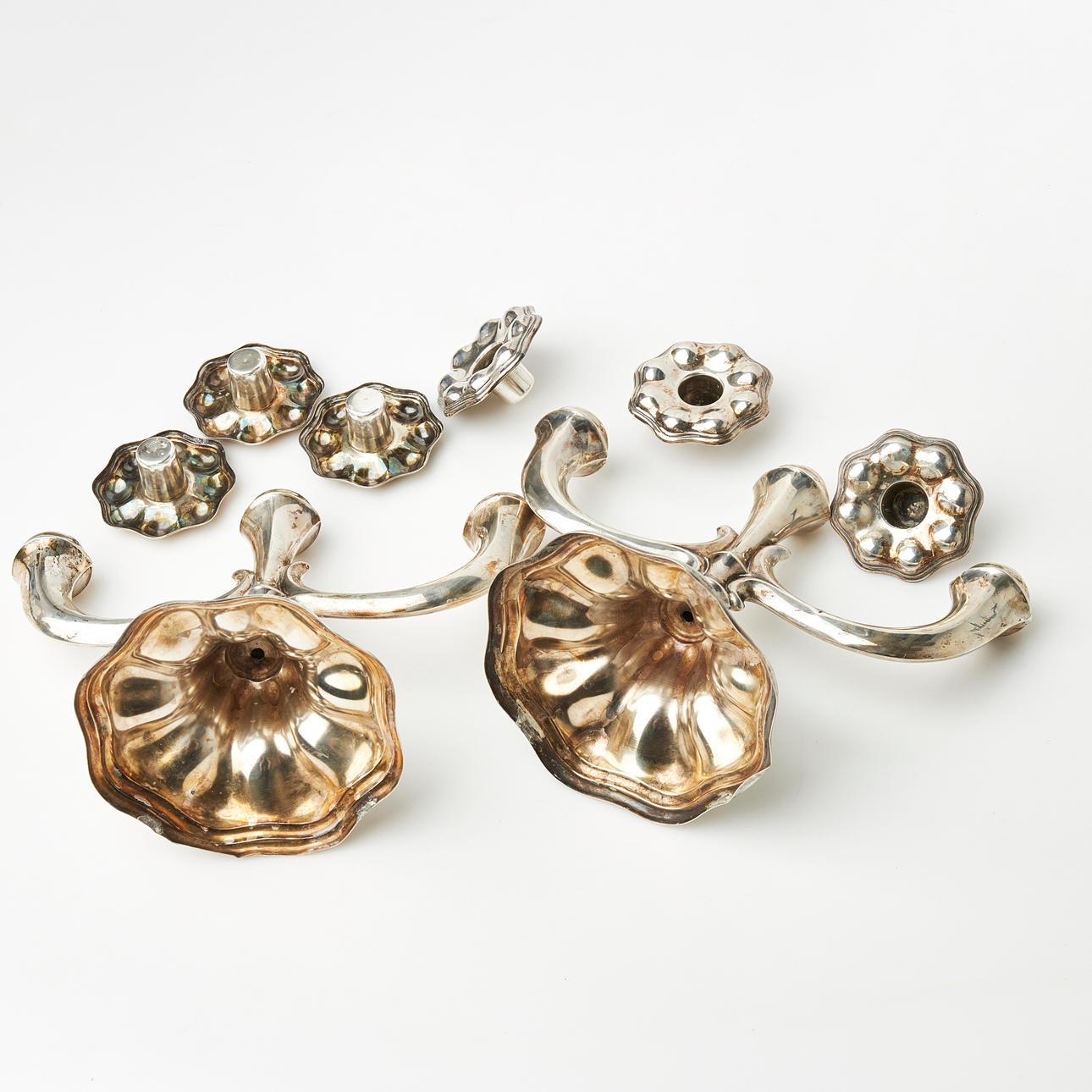 Stockholm, 1937, three candle holders. Height about height about 21, length about 32 cm. Total weight approx. 761 g. Condition Normal wear and tear, minor marks, scratches, dents. 117142