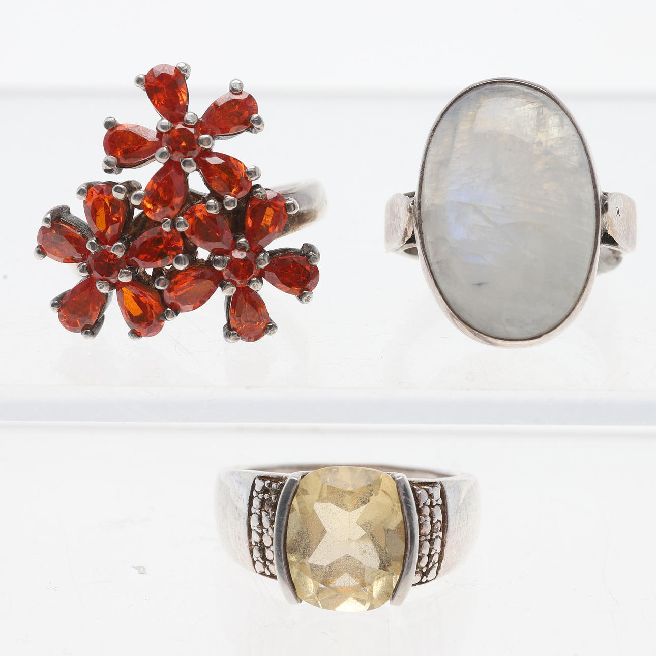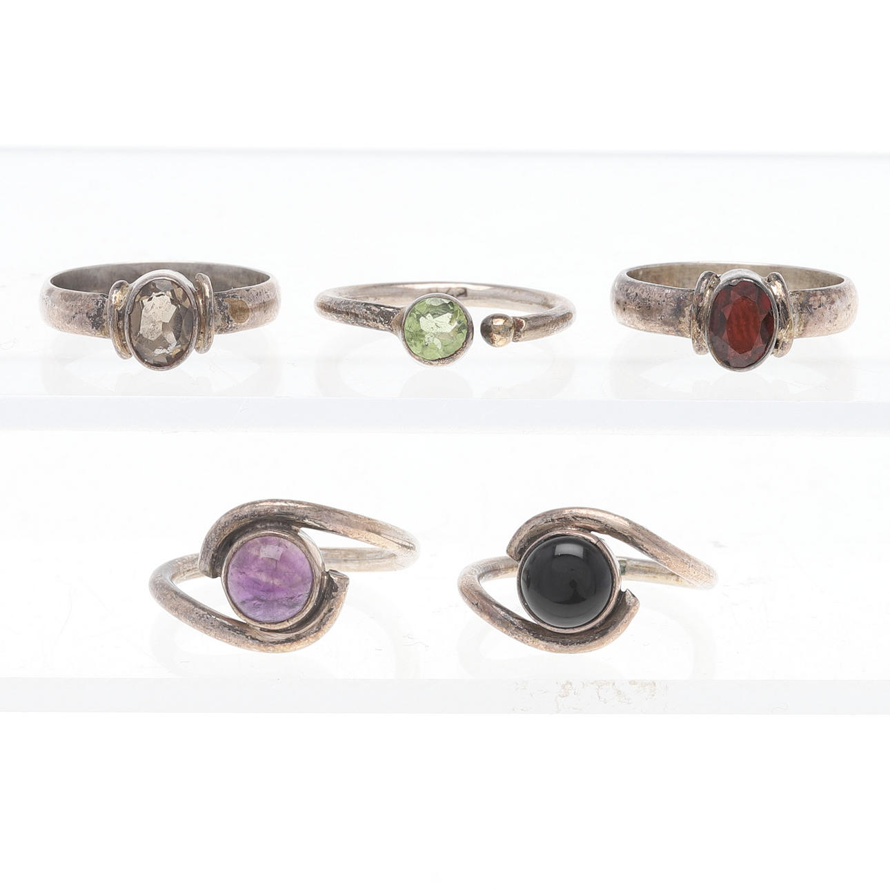 1.Size approx 16.75/53 & 17.25/54.Width about 4-20 & 4-15 mm.Weight about 9.8 grams. 116664 2.Storlek ca 17,25/55.Bredd ca 5-27 mm.Vikt ca 9,8 gram. 116743 3.Diameter ca 14 cm.naturligt slitage. 97158 4.Storlek ca 17/53,5-17,75/56.Skenornas bredd ca 2-4 mm.Vikt ca 14,6 gram.Bruksslitage. 116735 5.Ca 46x23 mm.Rubin ca 25x17 mm.Vikt ca 15,9 gram.Sten med inneslutningar & defekter. I övrigt bruksskick. 116717 6.Majoriteten med oädla stenar/imitation. Halvädelstenar förekommer.Armband, längd ca 17,5 cm.Hängen & brosch, ca 17x22 - 55x29 mm.Vikt ca 89,9 gram.Bruksskick.116714 7.Röd kvart och möjligen tugtupit .Ca 48x21 mm.Vikt ca 6,8 gram.Bruksskick. 116702 8.Size approx. 16.5-17.25.Width at the top approx. 11-21 mm.Weight approx.19.4 grams.Condition of use. 116772 9.Approx. 9x6 cm.Wear and tear.150099