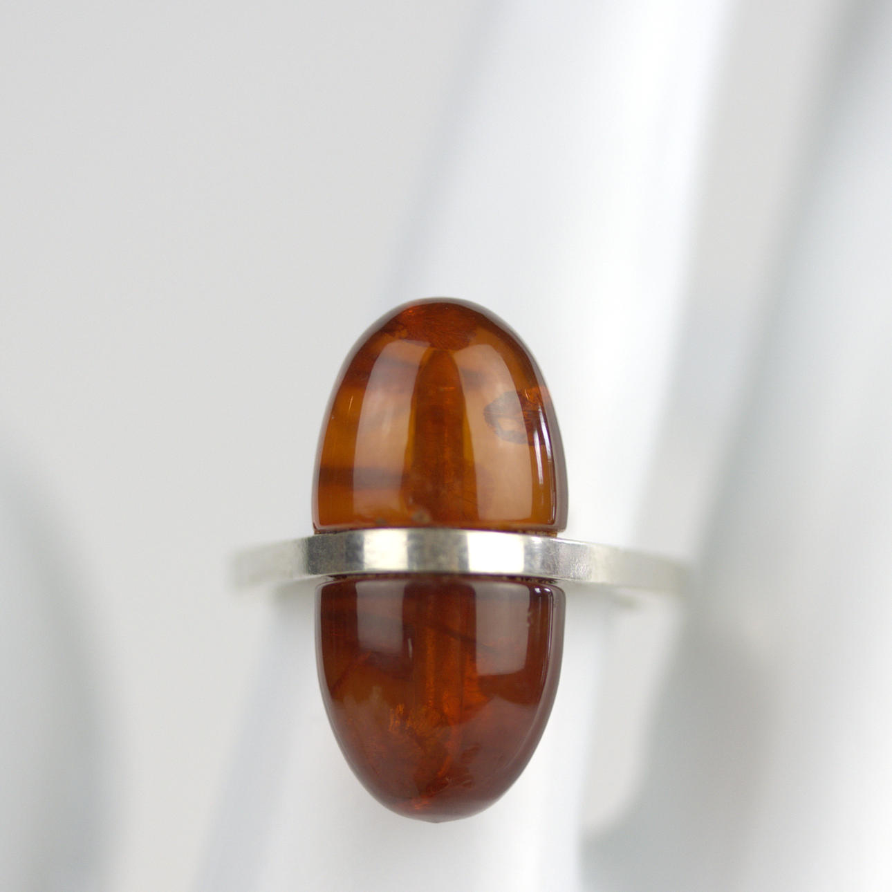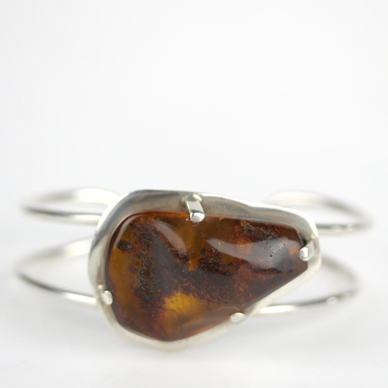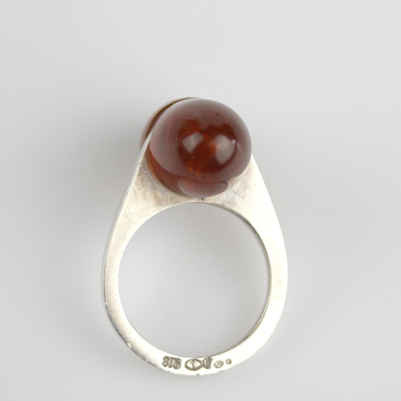 A 3-piece pendant, ring and bracelet, silver with amber, contemporary.