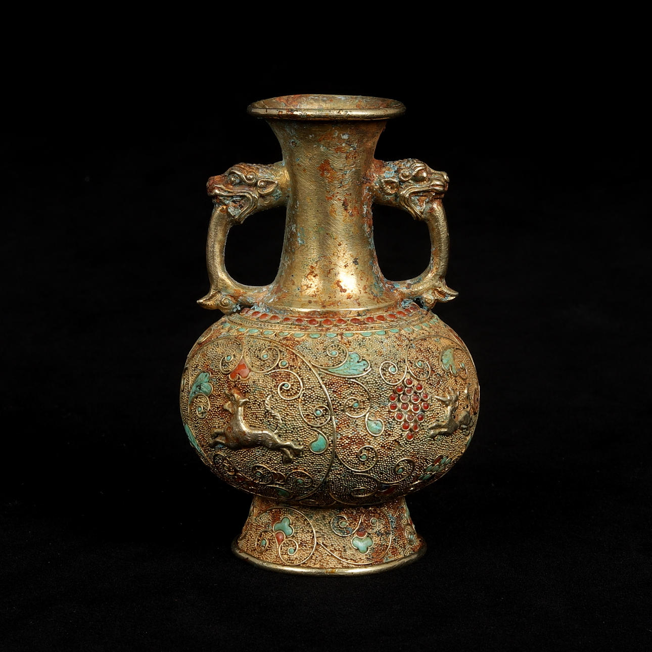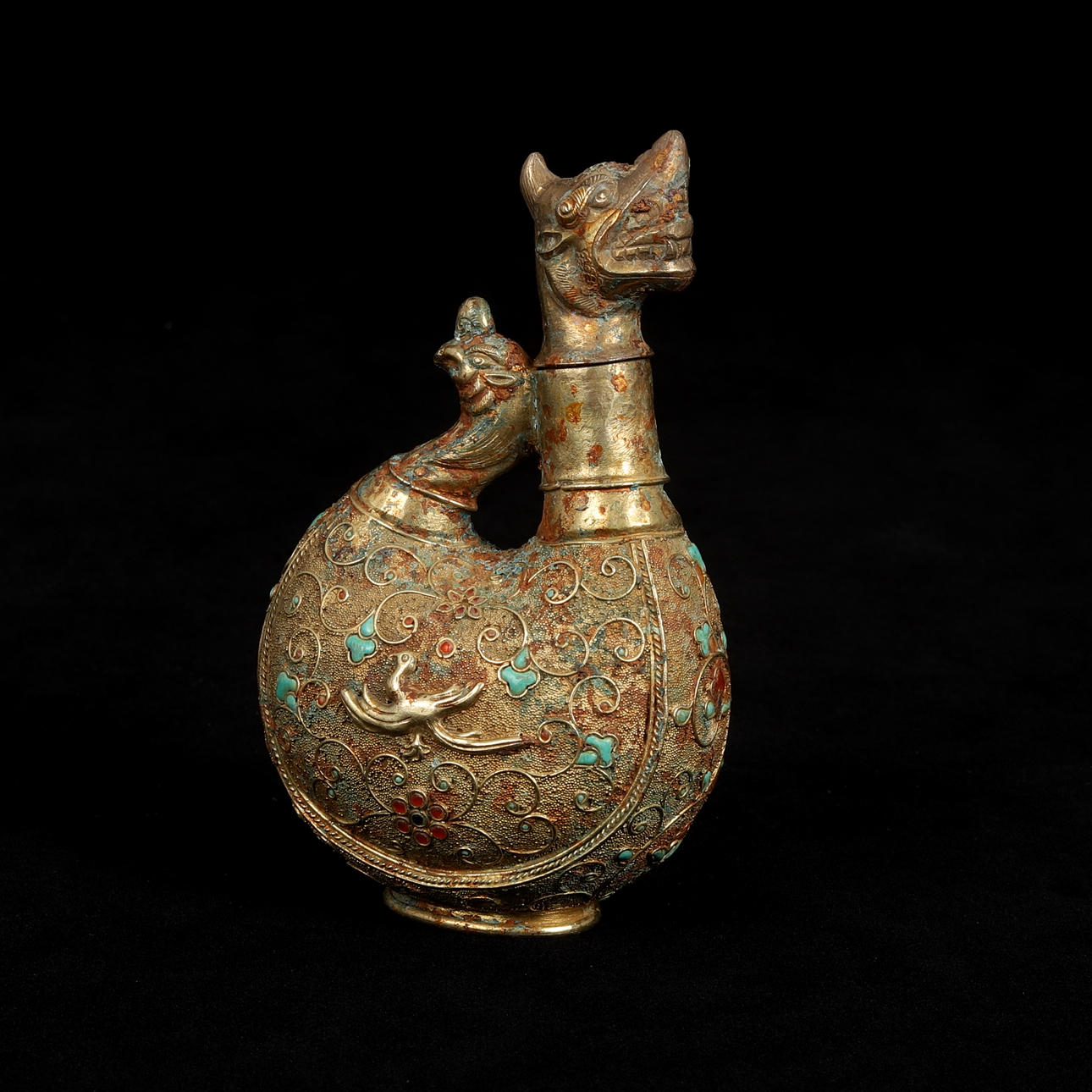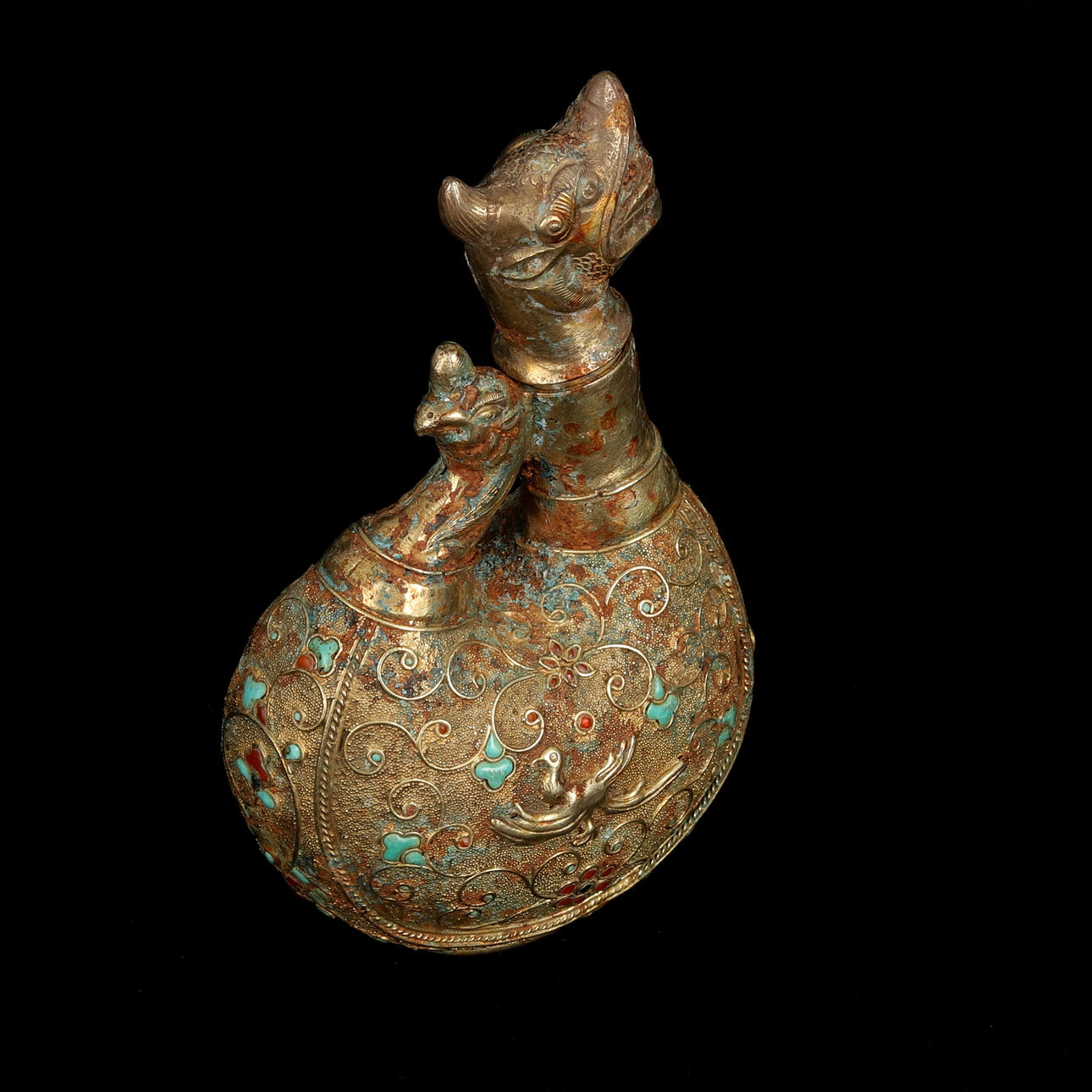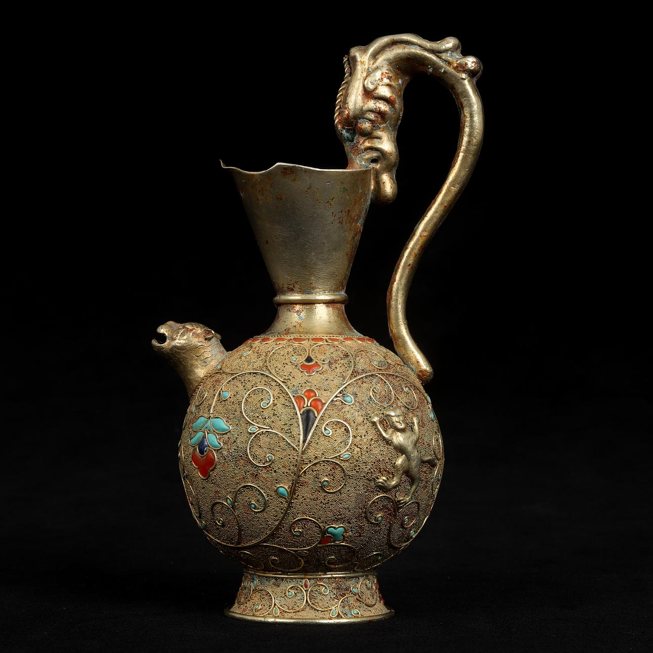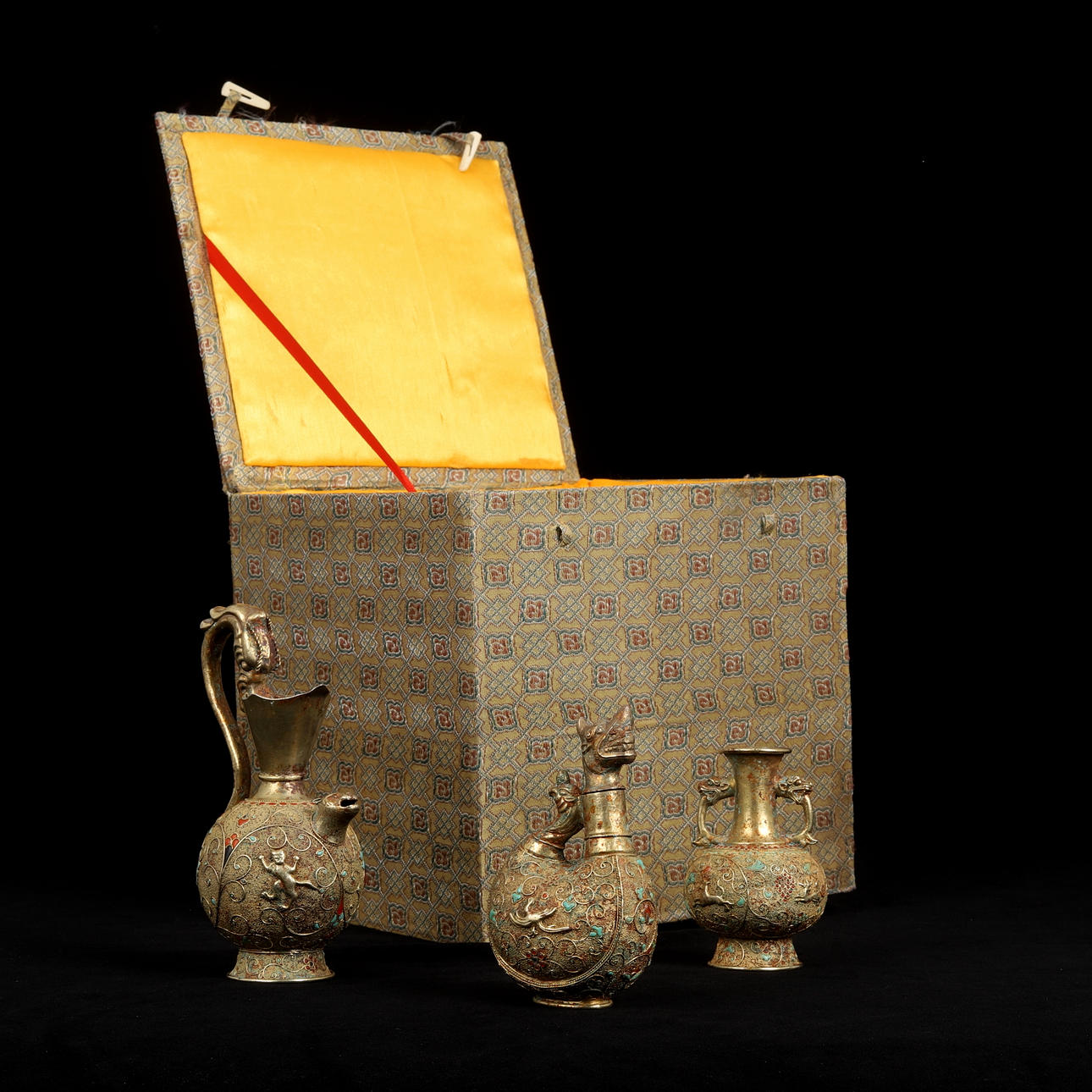 Garnish consisting of jug, bottle and miniature pot. Height 9.1-15 cm. Condition Normal wear and tear, the pot with dent. 179841