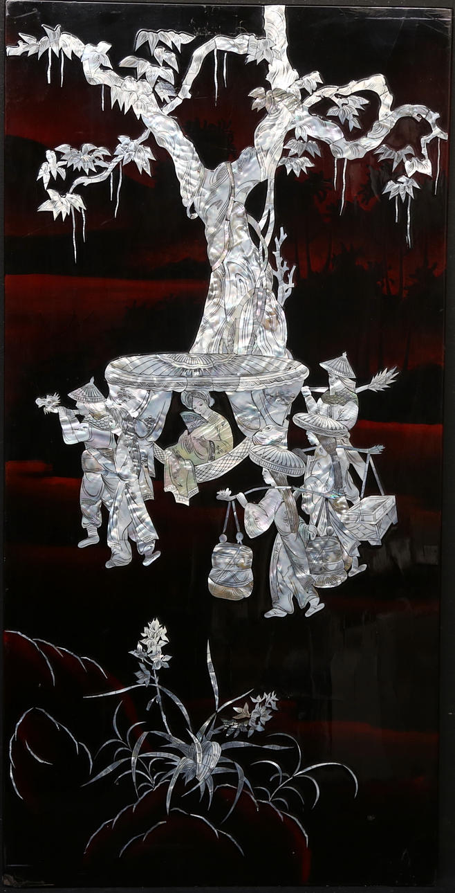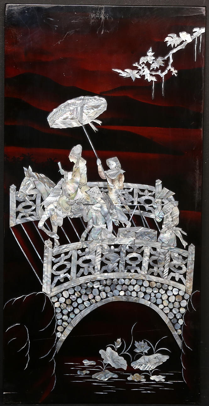 Varnish with mother-of-pearl imitation.39x79 cm. Condition Injuries. 340727