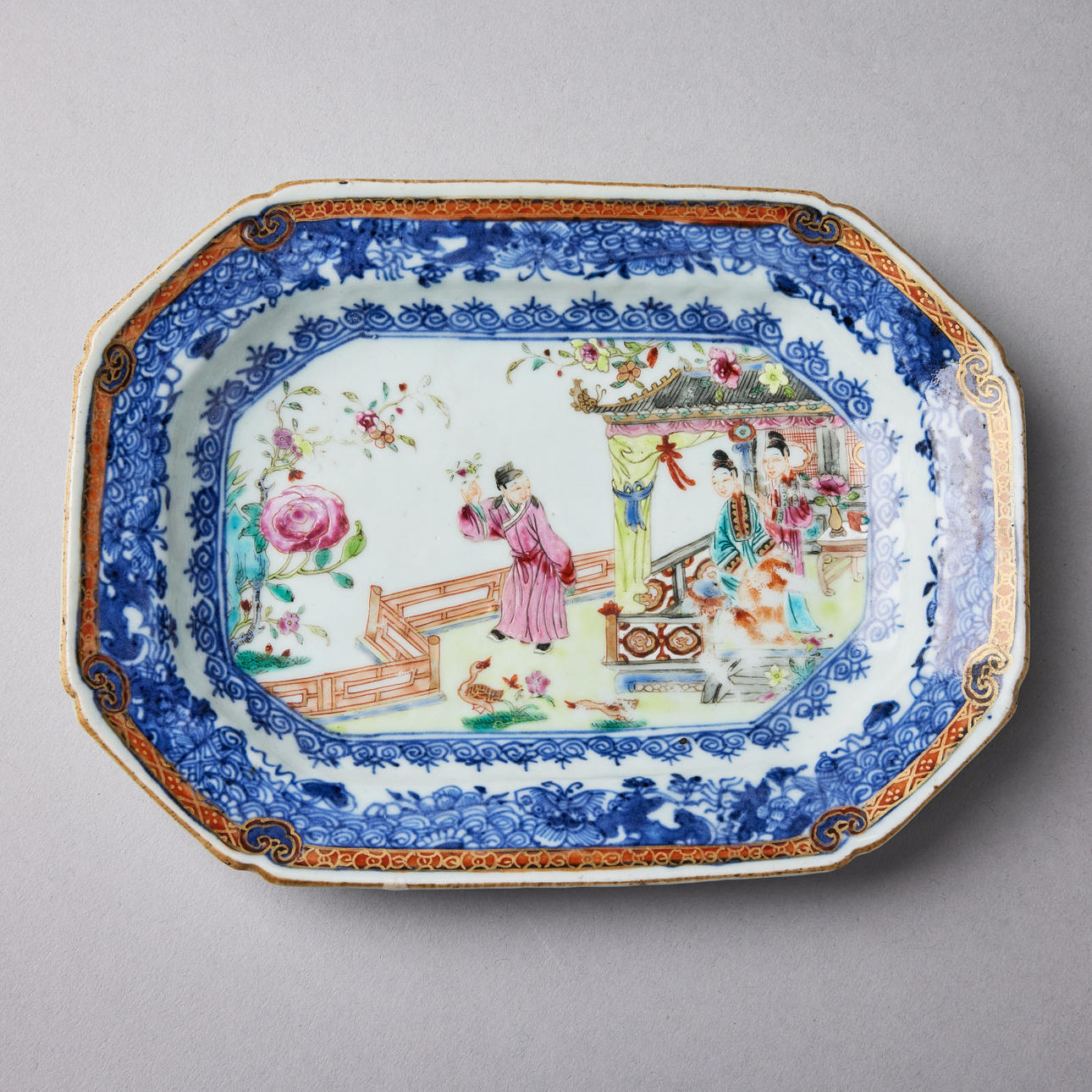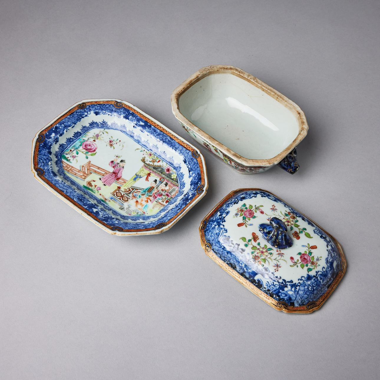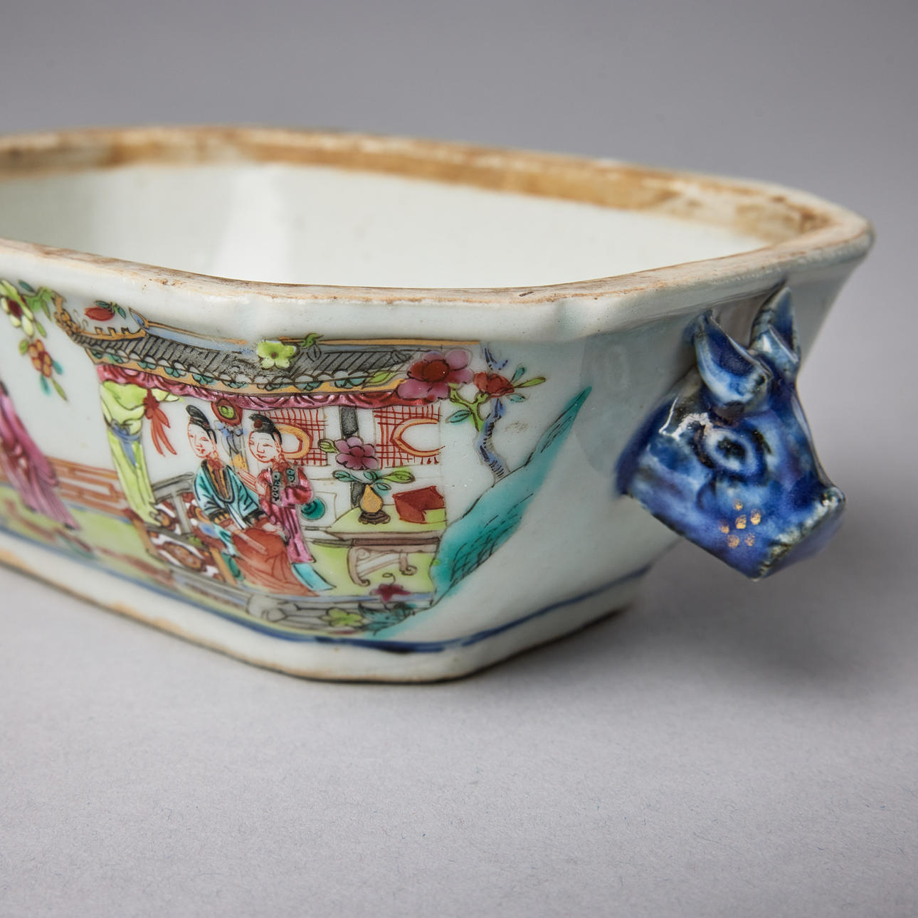 Decorated with figures on a terrace and flowers, boar head handles, Qianlong period (1736-1795).