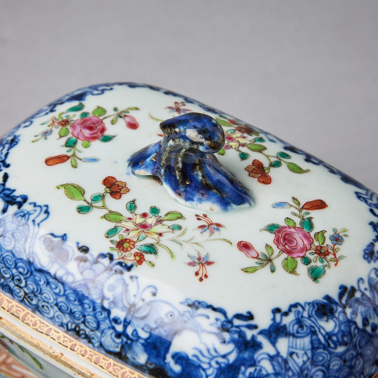 A BLUE AND WHITE AND FAMILLE ROSE BUTTER TUB WITH COVER,
