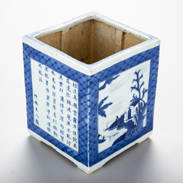 Knutson & Bloom Auktioner A CHINESE BRUSH POT, Most likely the work of a smaller studio containing a moral allegory typical of late Qing scholars, period: Qing Dynasty (1644-1912)
