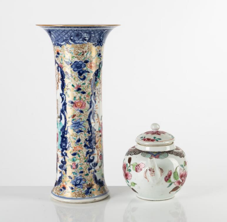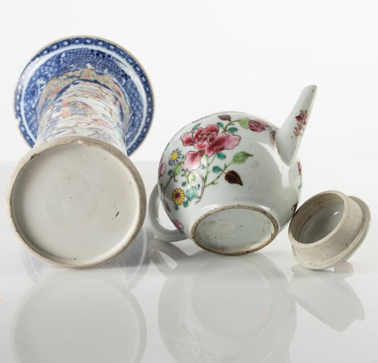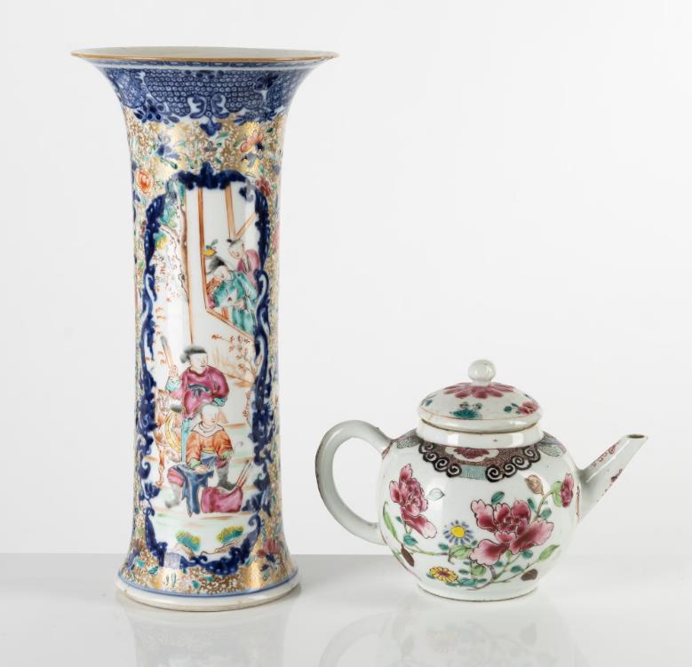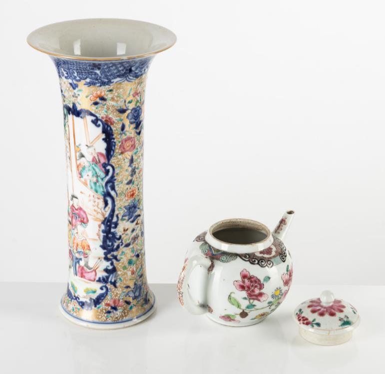 A Chinese export porcelain famille rose teapot and vase, Qing dynasty