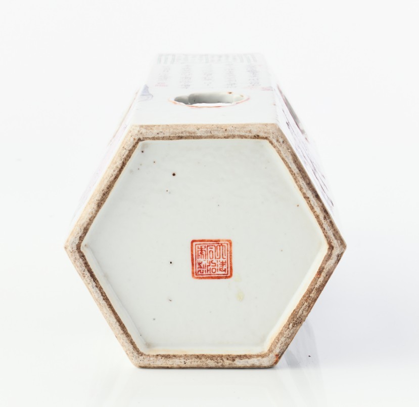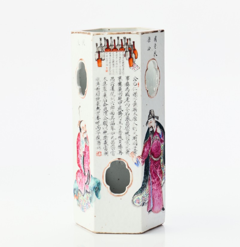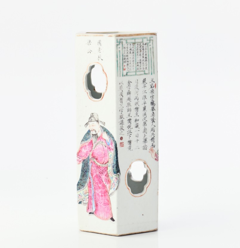 A Chinese Famille Rose Porcelain 'Wu Shuang Pu' Brush Vase The base with a seal mark of Tongzhi in iron-red. Period: mark and period of Tongzhi (1862-1874). Height: 28 cm.
