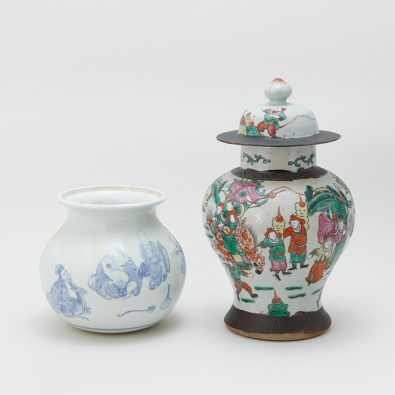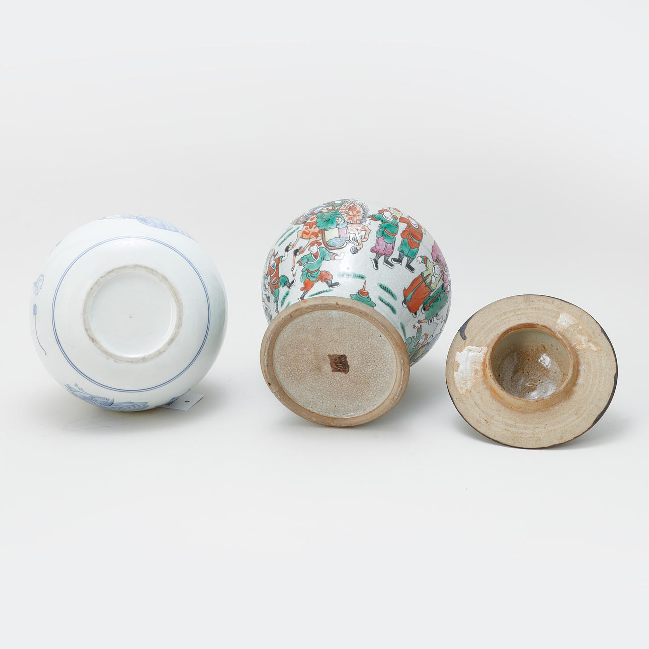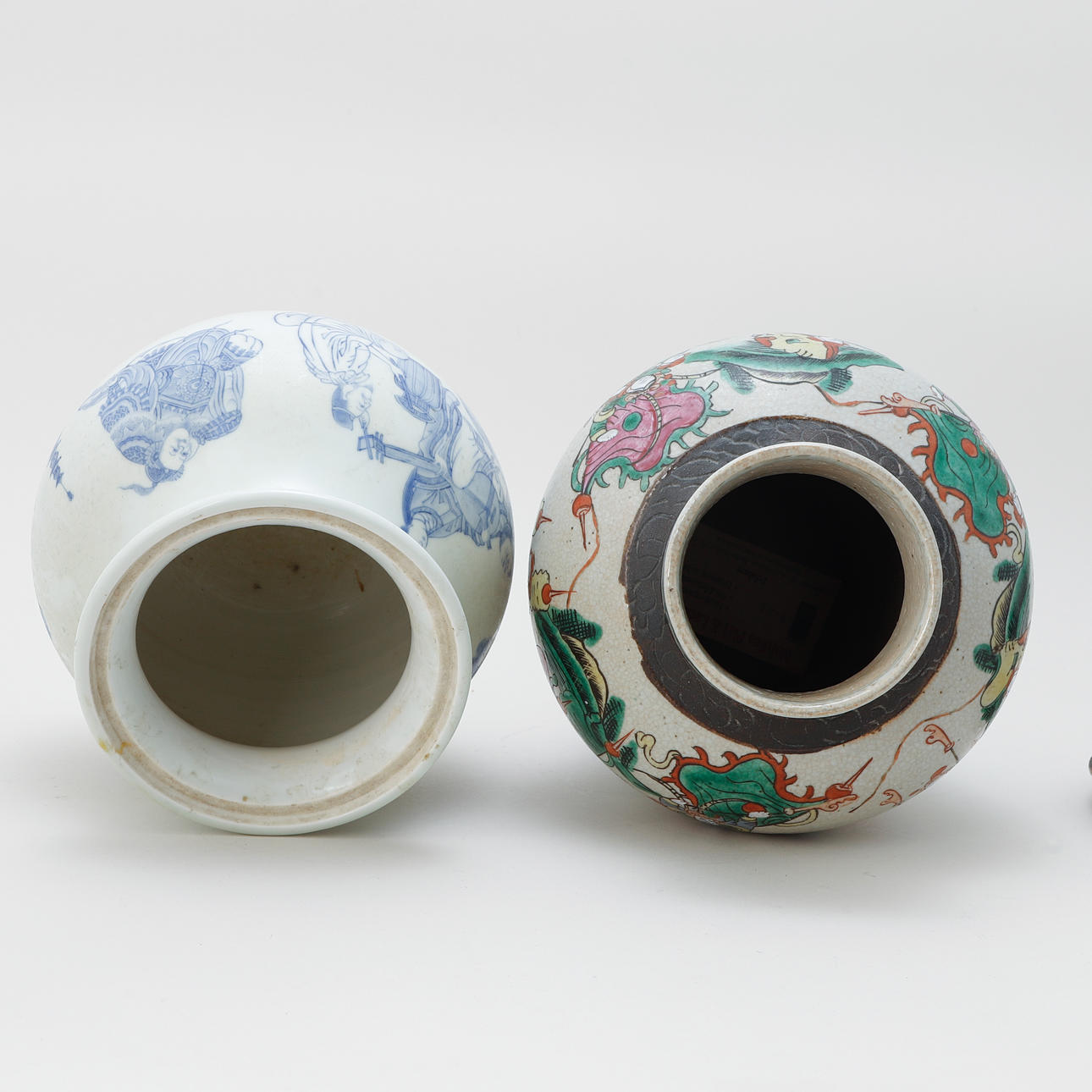 Decor in polychrome colors and underglaze blue. Height 21-37 cm. Condition Chips as well as minor cracks. 203907