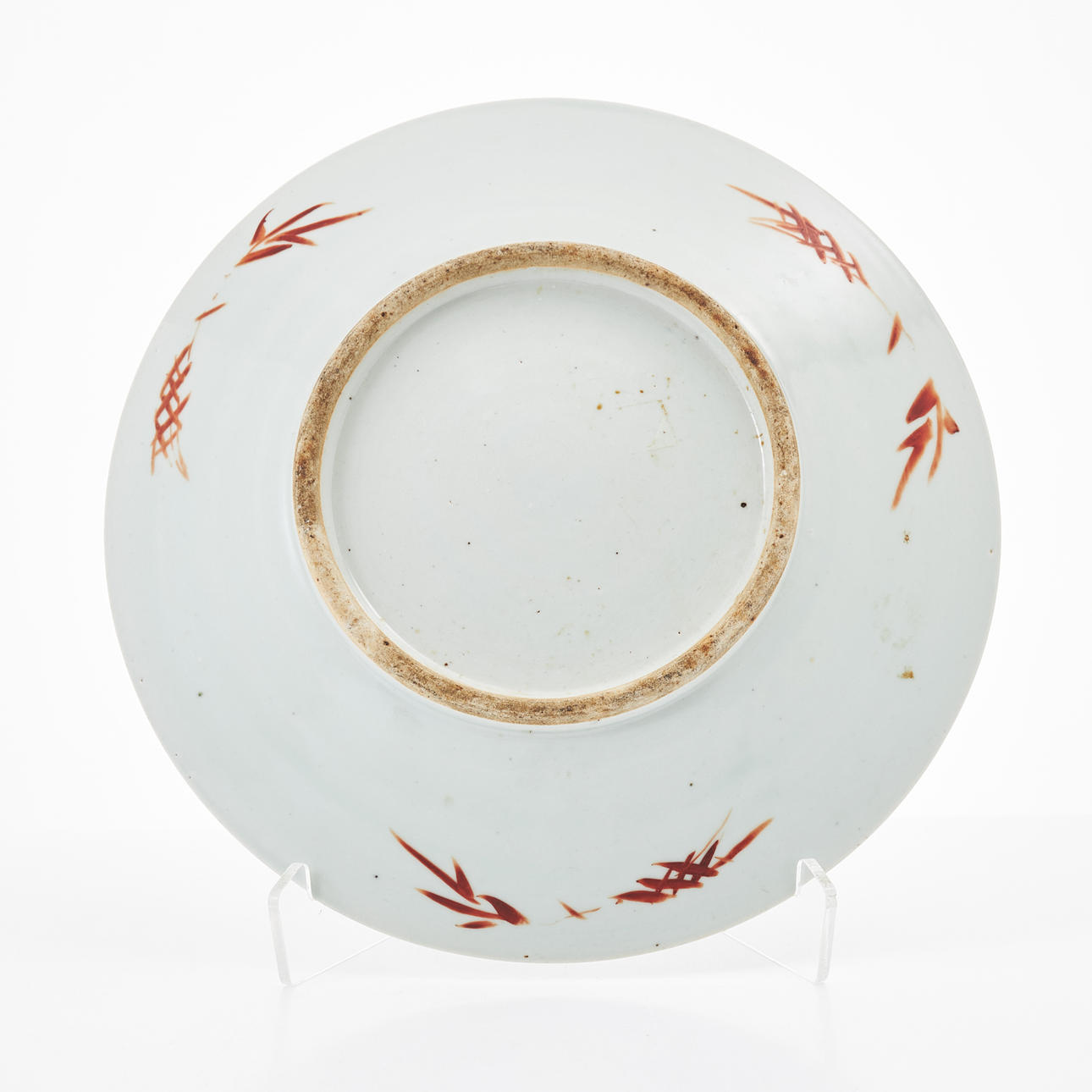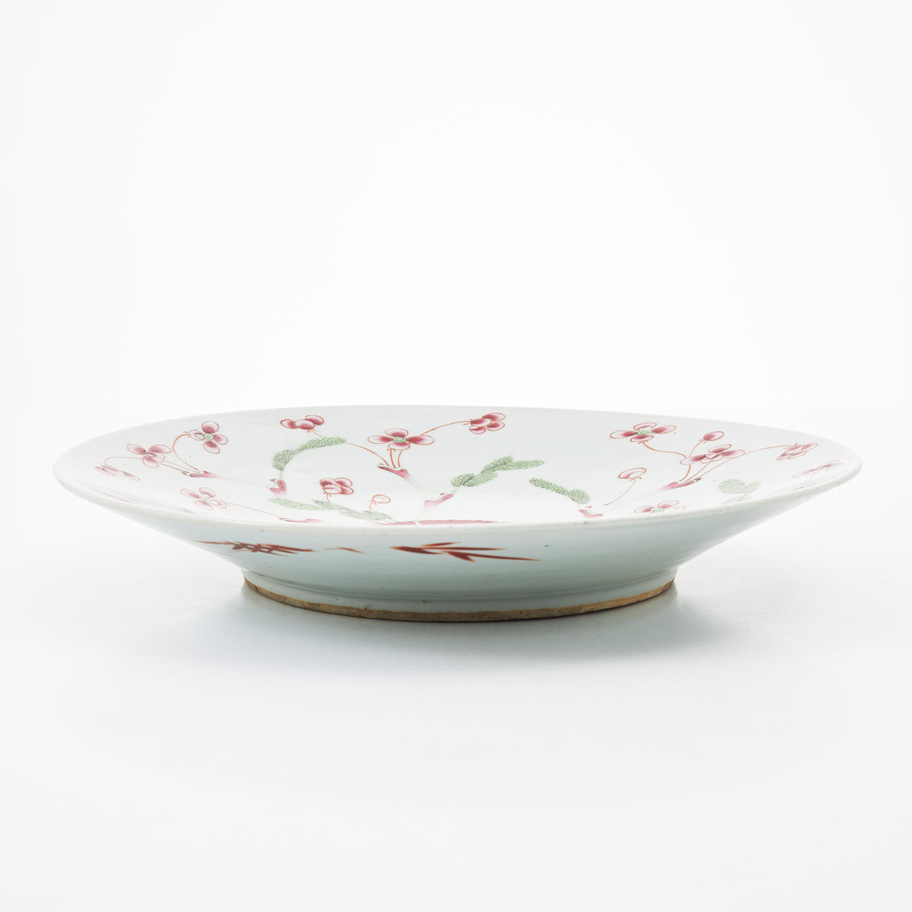Lotus flower centre decor, brim with flower twigs in enamel colours and iron oxide. Diameter approx. 35 cm. Condition Enamel loss, wear and tear.