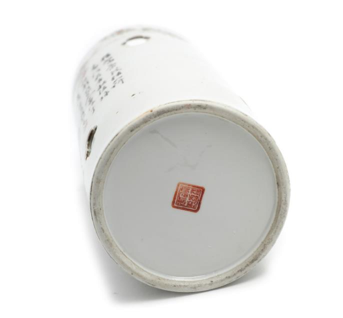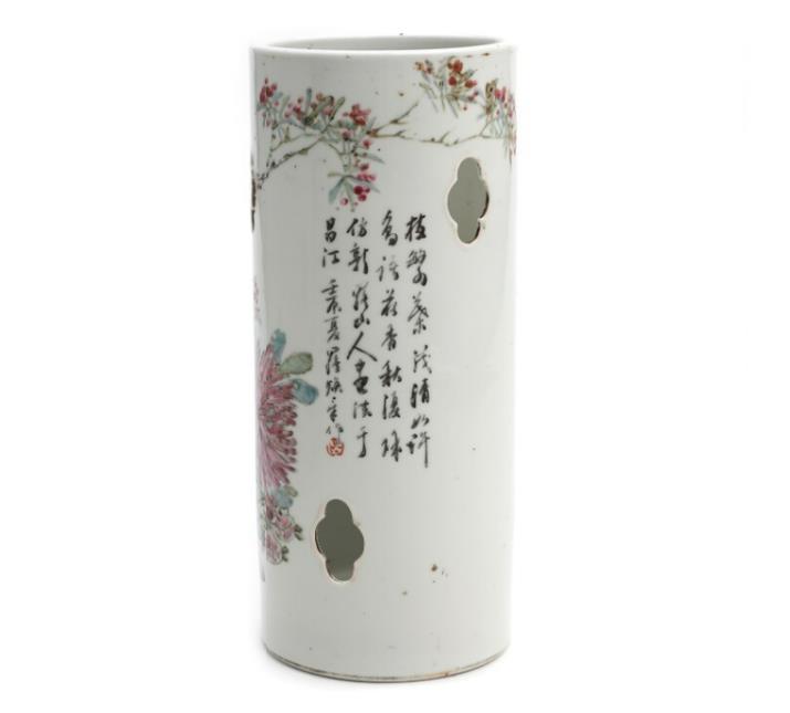 A Chinese porcelain hatstand, decorated in colours with a bird.