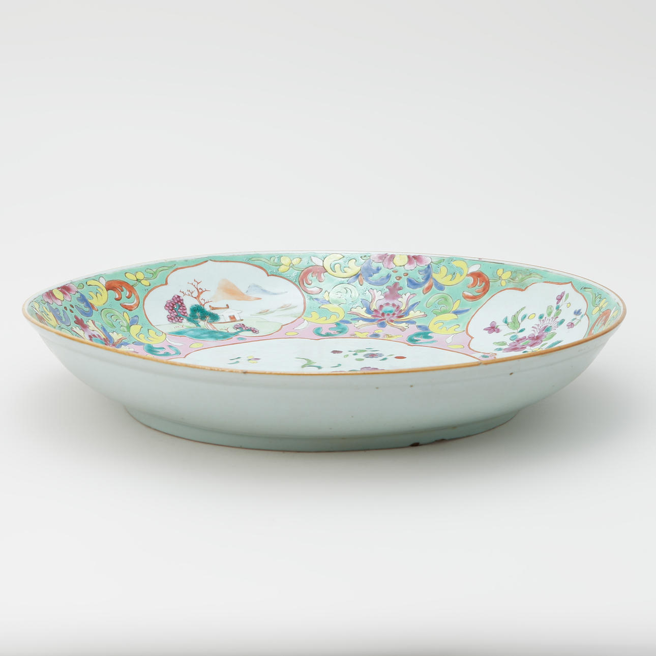 Decor of landscapes and flora. Diameter about 41 cm. Condition Abrasions. Scratches. Glaze and paint loss. 226793