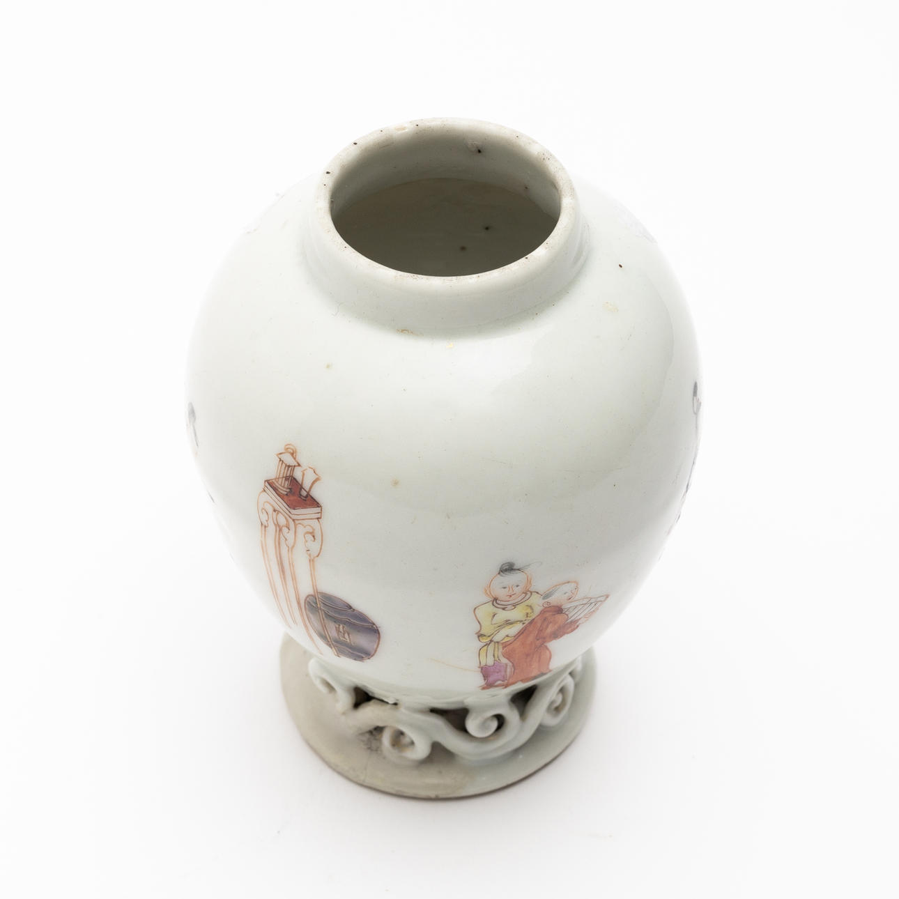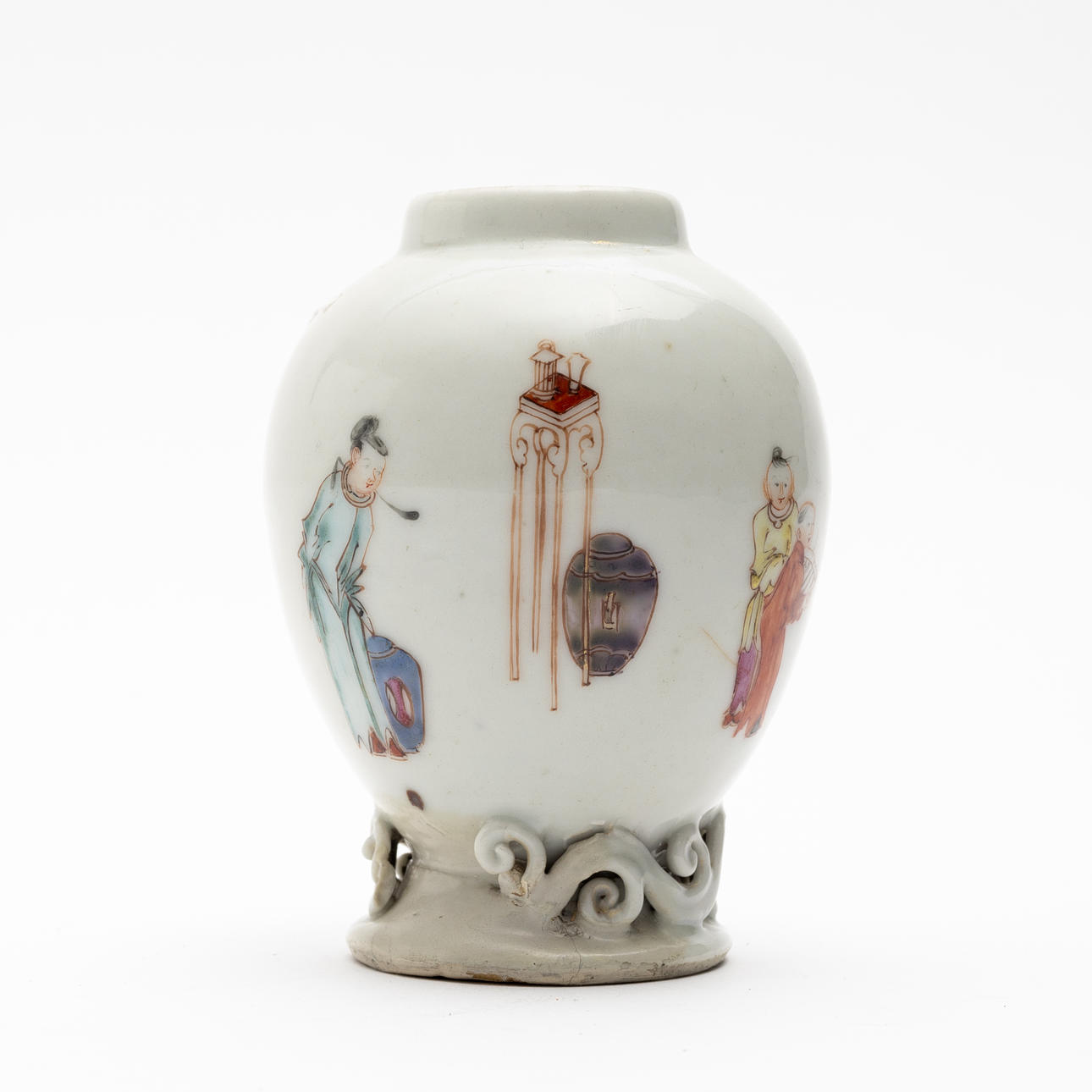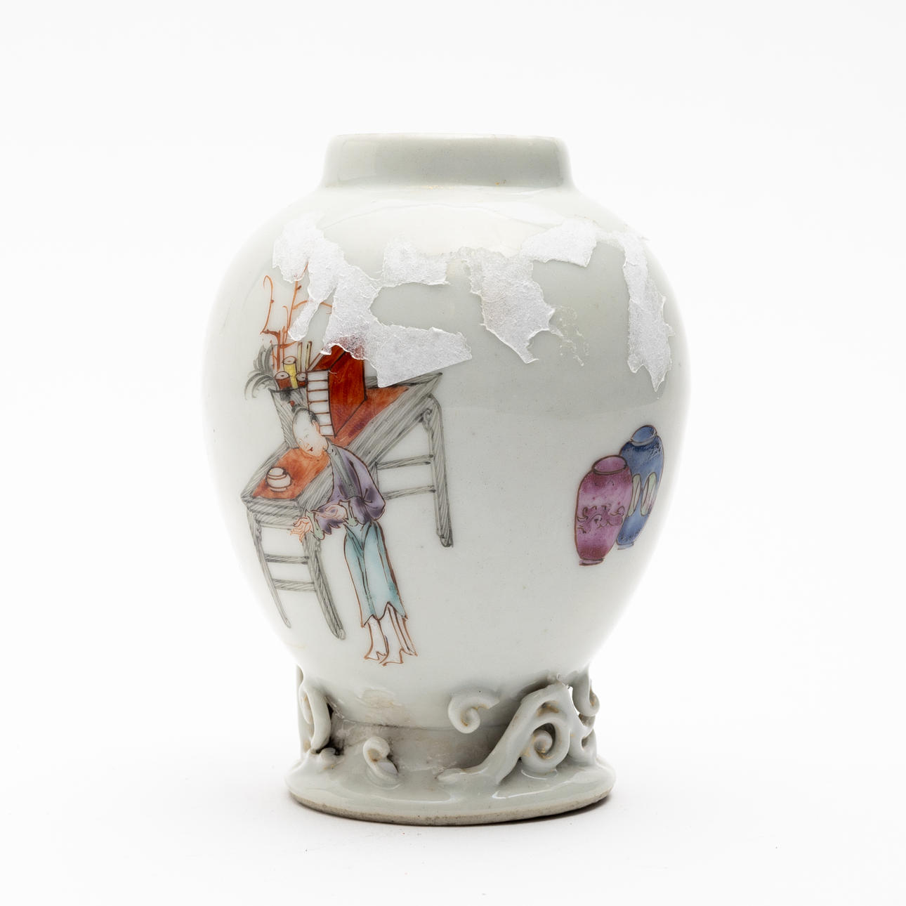 Figural decor, applied decor around the foot. Height 10 cm. Condition Hair cracks closer to the foot, decor loss, repair on the foot. 308677