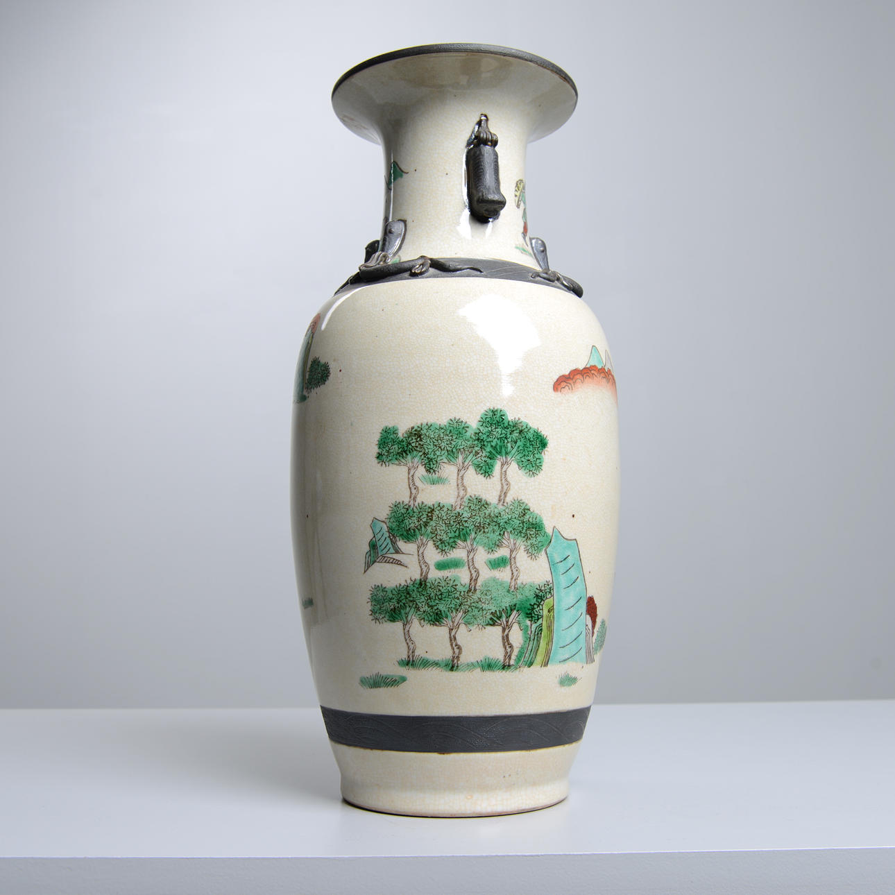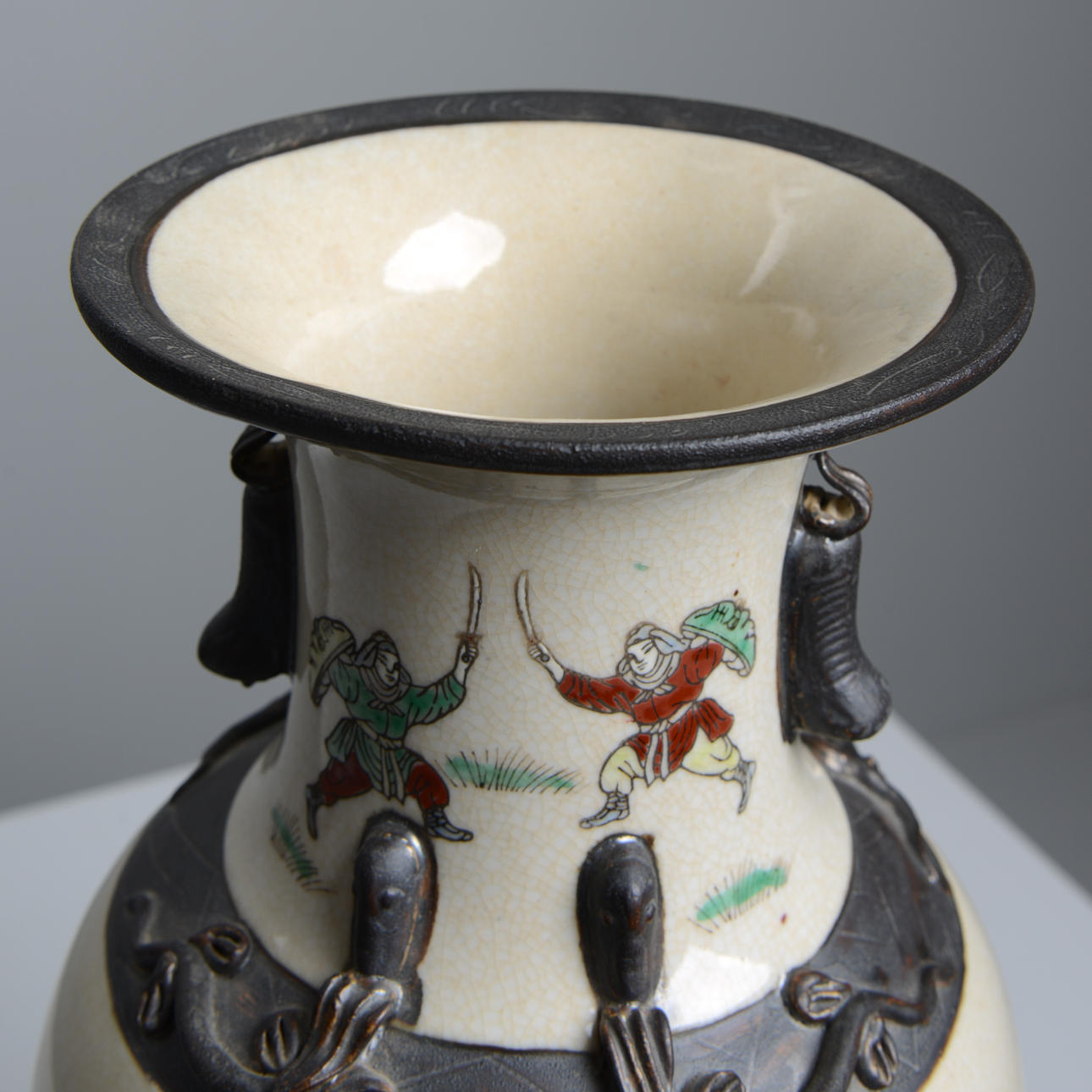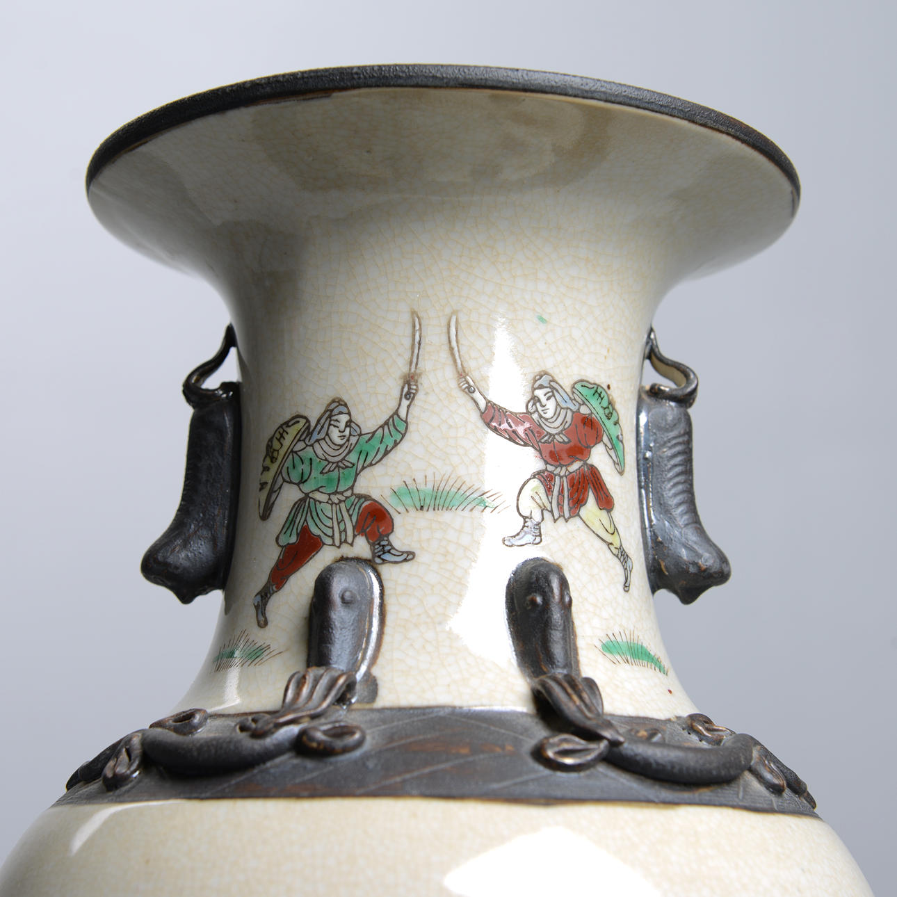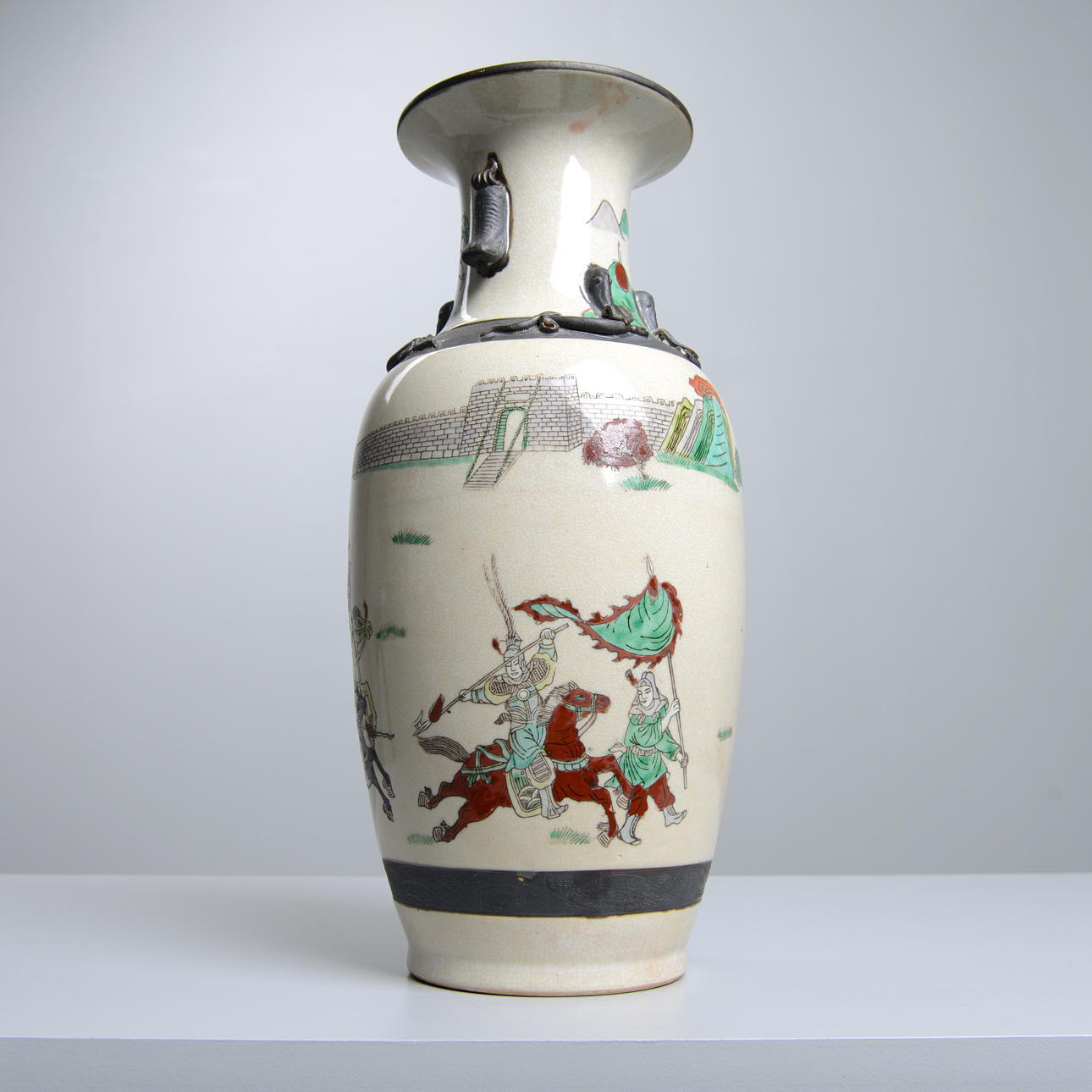 Motif with war scenes in enamel colors. Height 45 cm. Condition Normal wear and tear. 23008