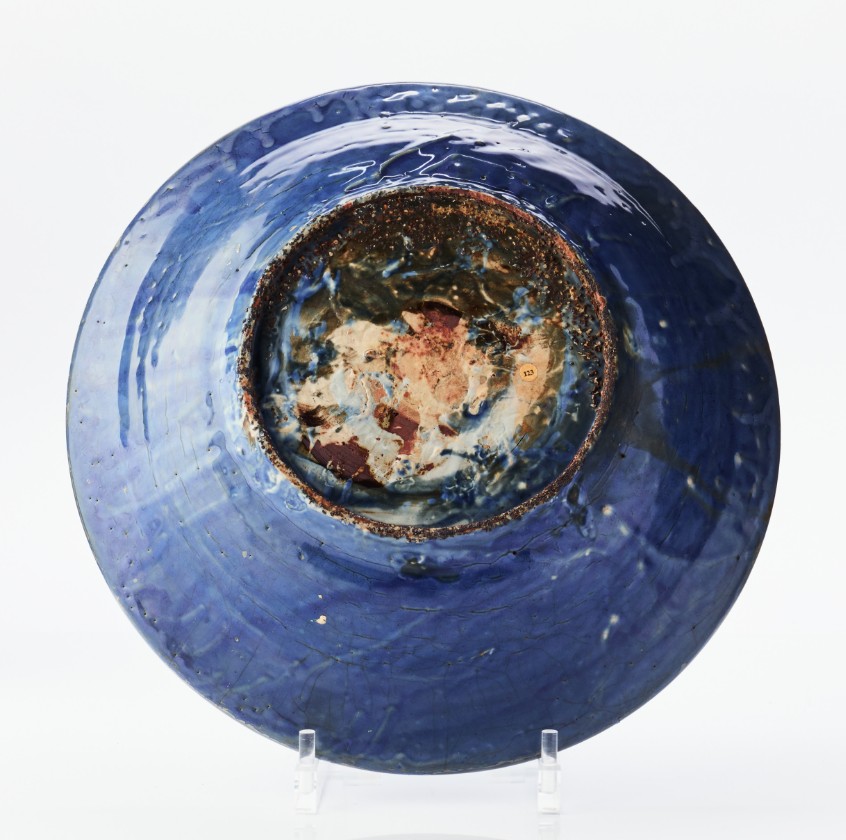 A Chinese Zhangzhou White Slip-Decorated Blue-Ground 'Swatow' Porcelain 'Floral' Dish Period: 16/17th century. Diameter: 38.5 cm.