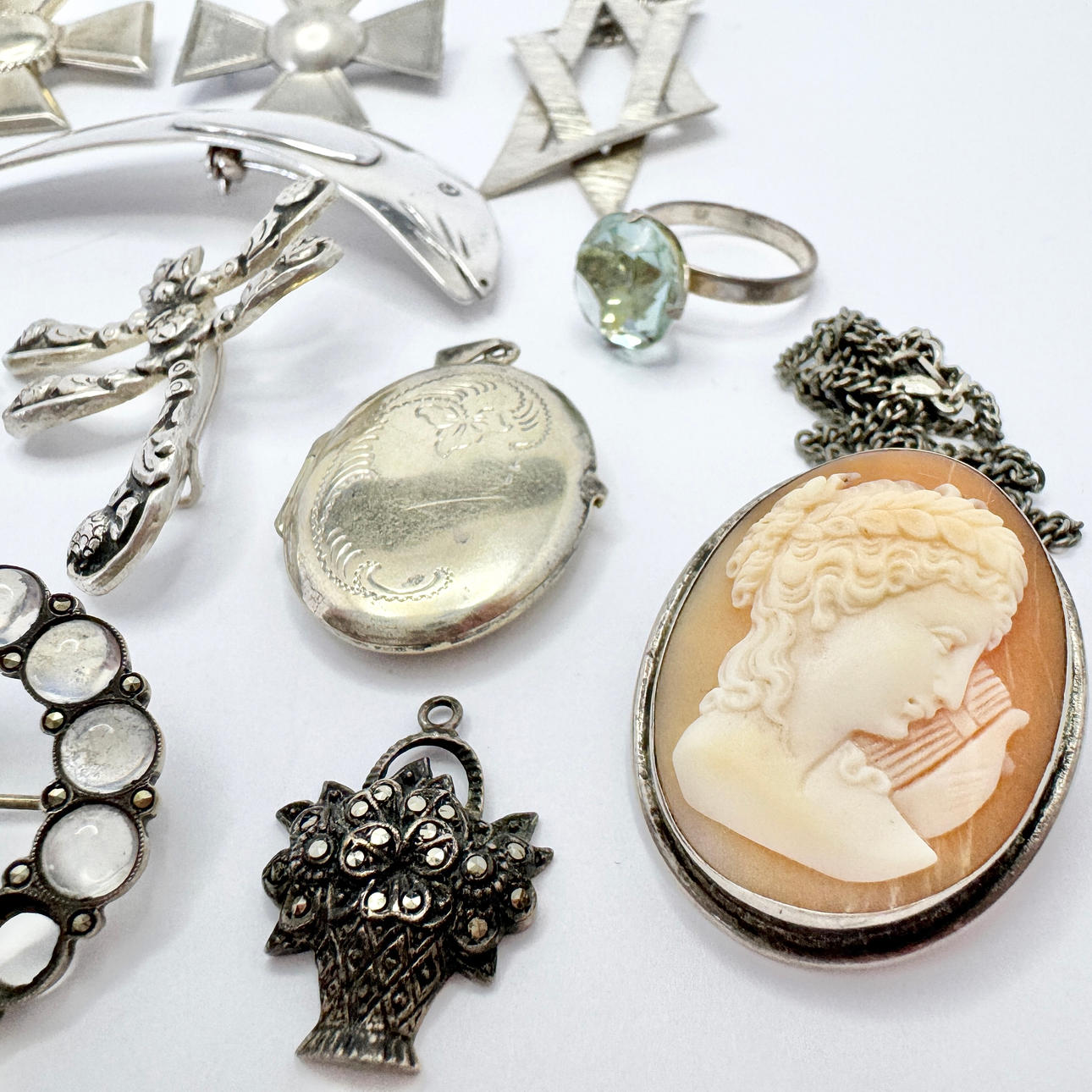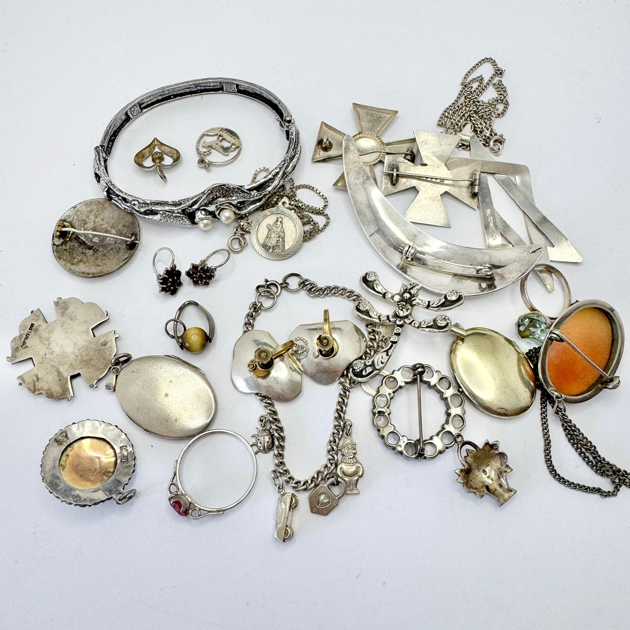 160 grams. Condition Condition of use. Brooch with moonstones without a stone, back pieces for Mexican earrings not in silver, engravings, etc. 13605