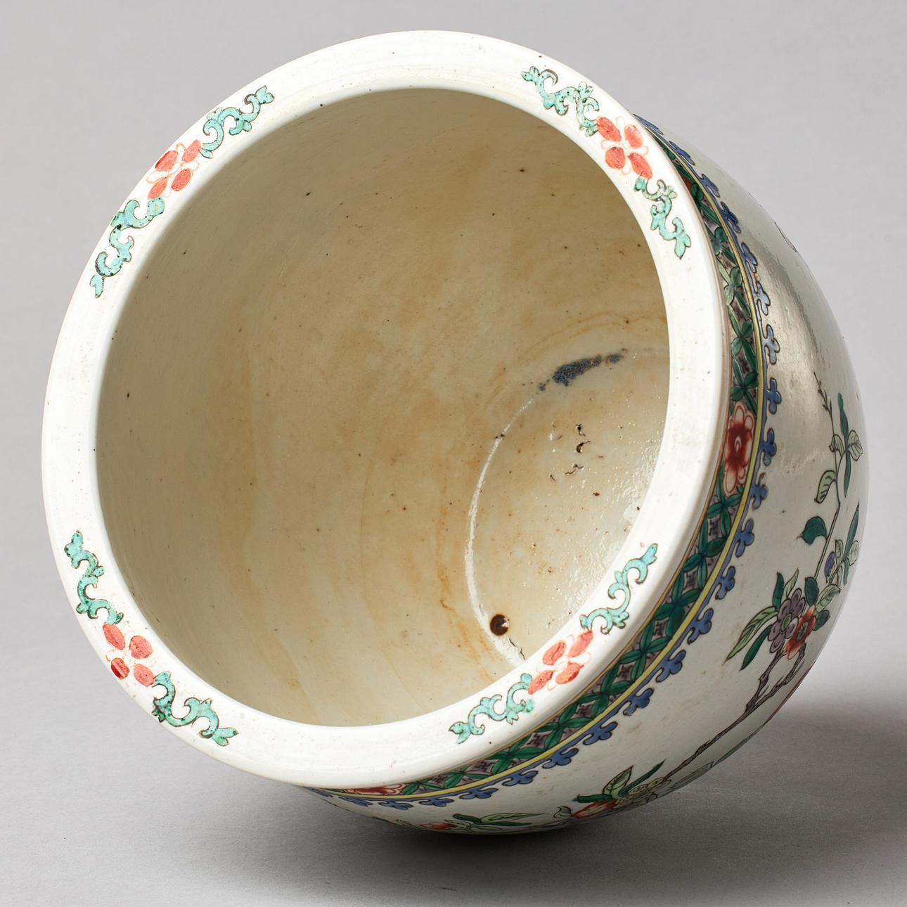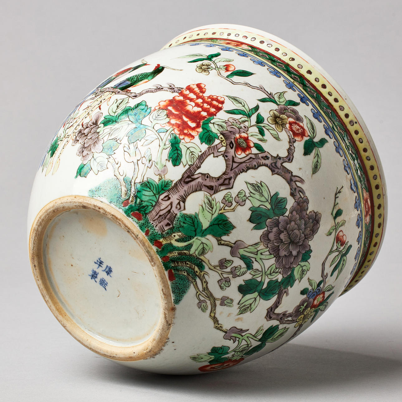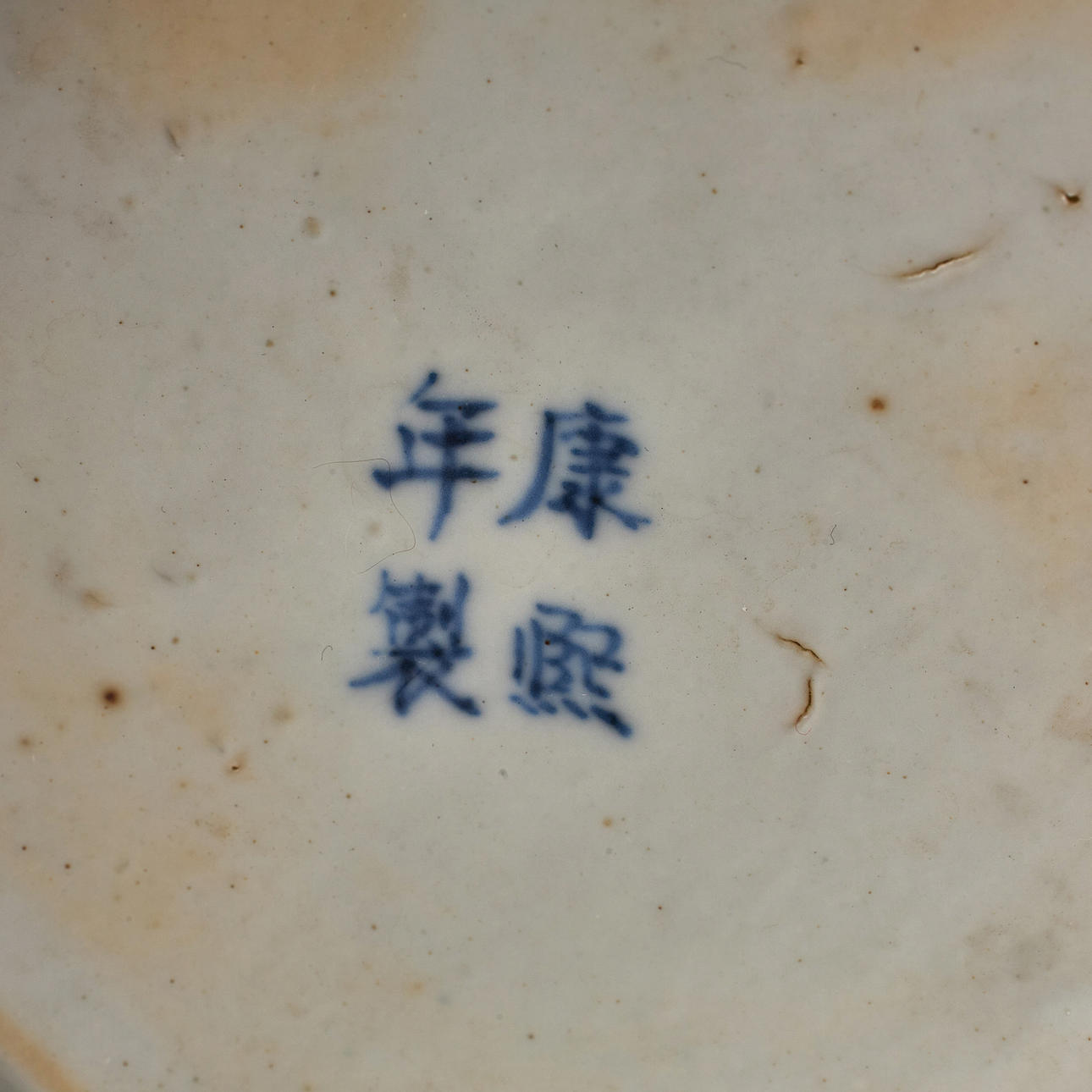 Painted with birds amidst flowering branches, Kangxi mark, early 20th century, diameter c. 21 cm. Condition Wear and firing defects. 28933