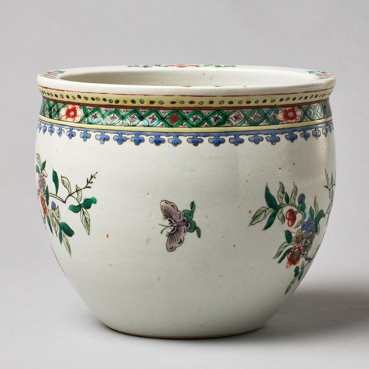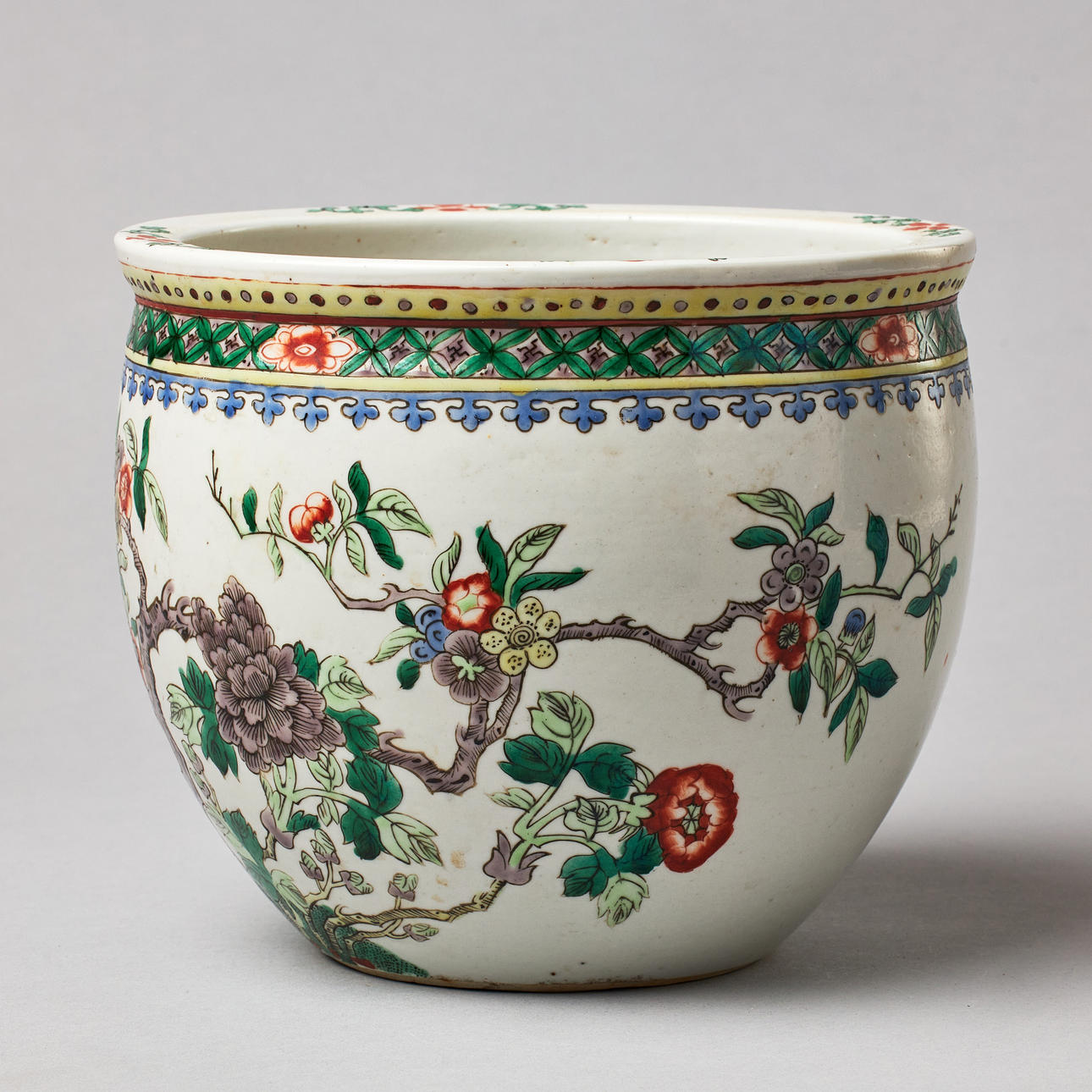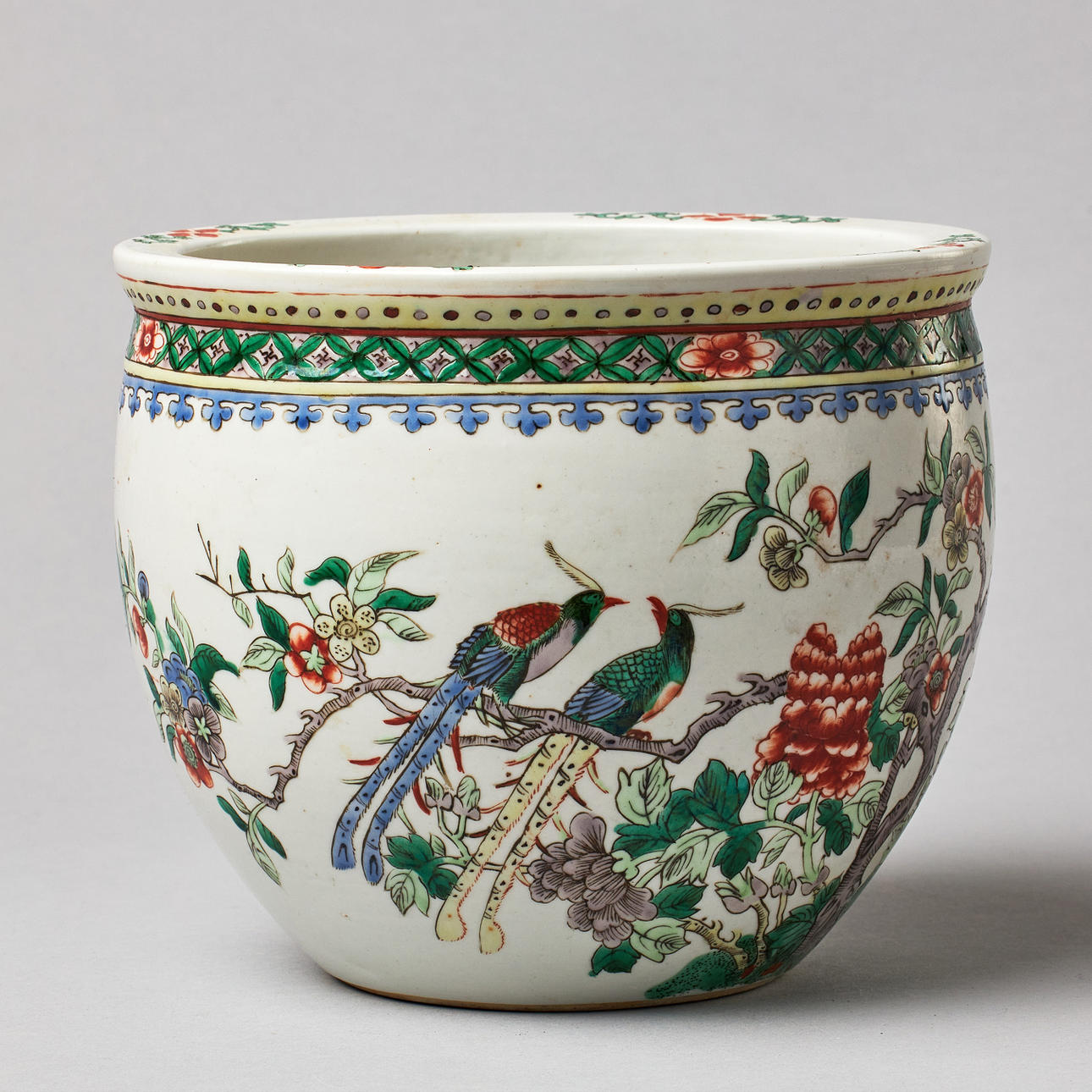 Painted with birds amidst flowering branches, Kangxi mark, early 20th century, diameter c. 21 cm. Condition Wear and firing defects. 28933