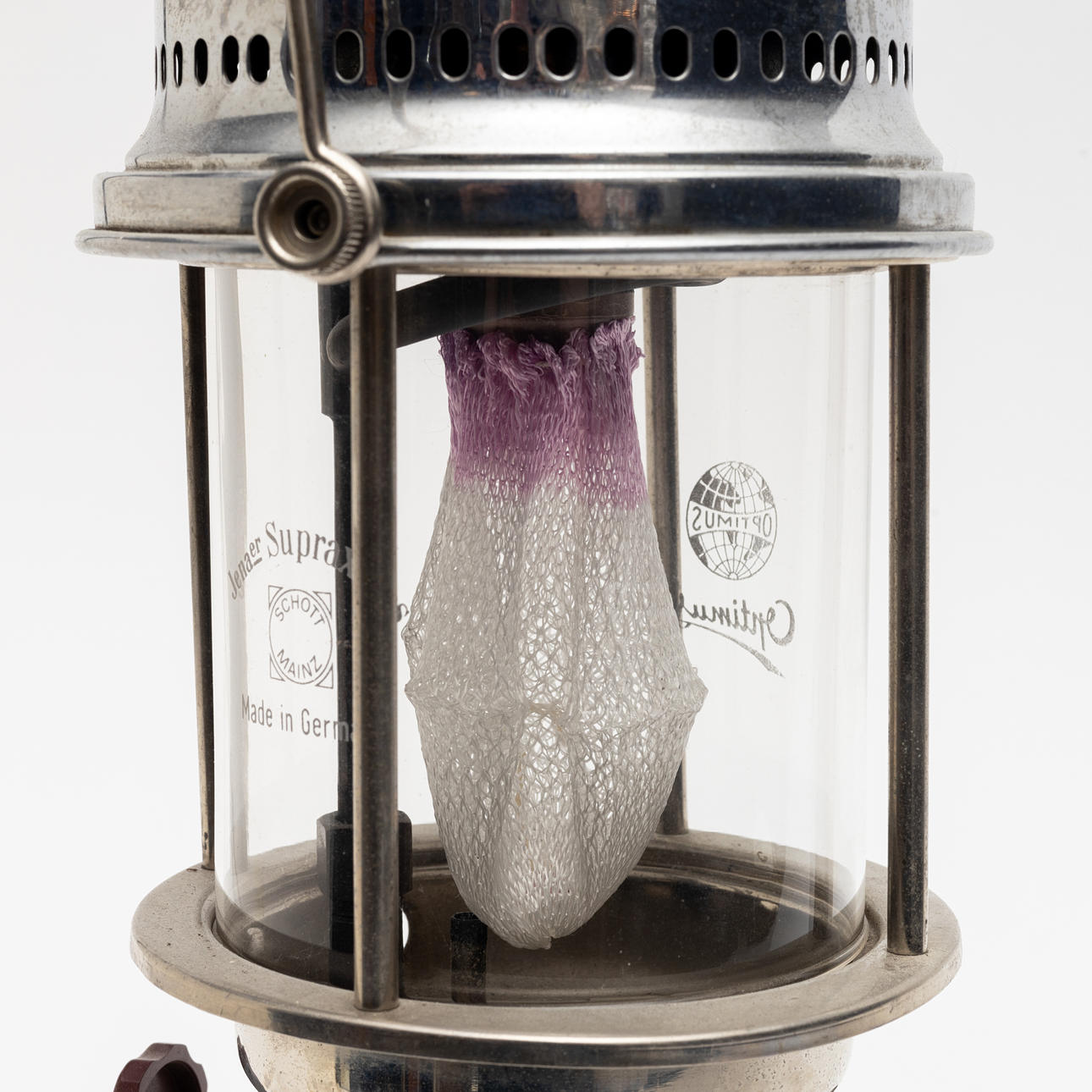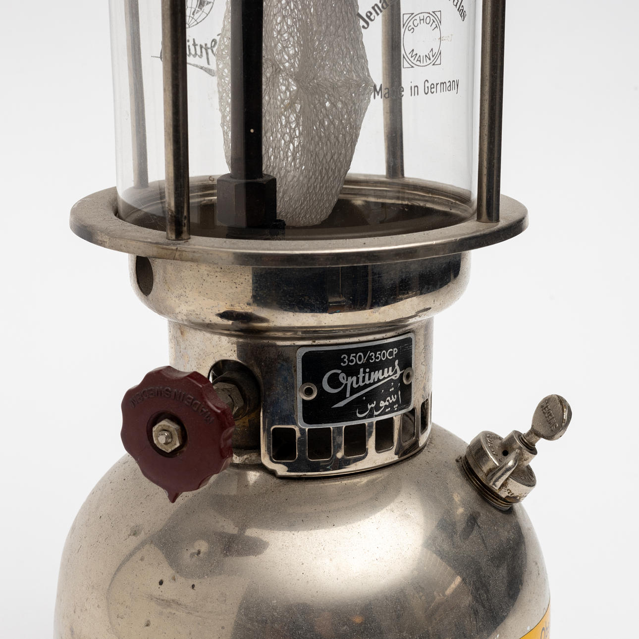 A glass metal “Optimus 350/350 CP” storm lantern, 20th century.