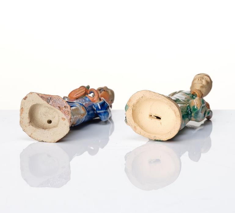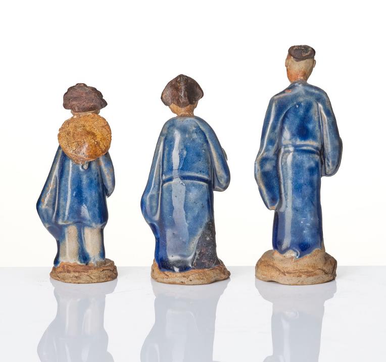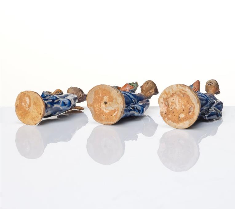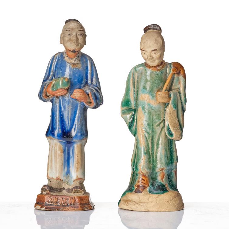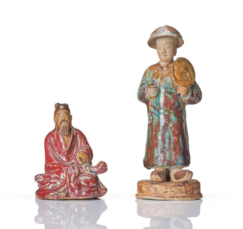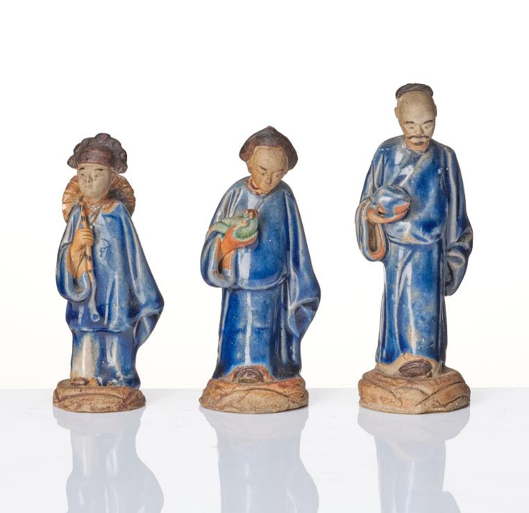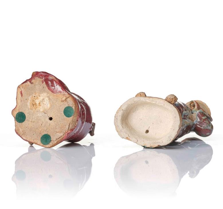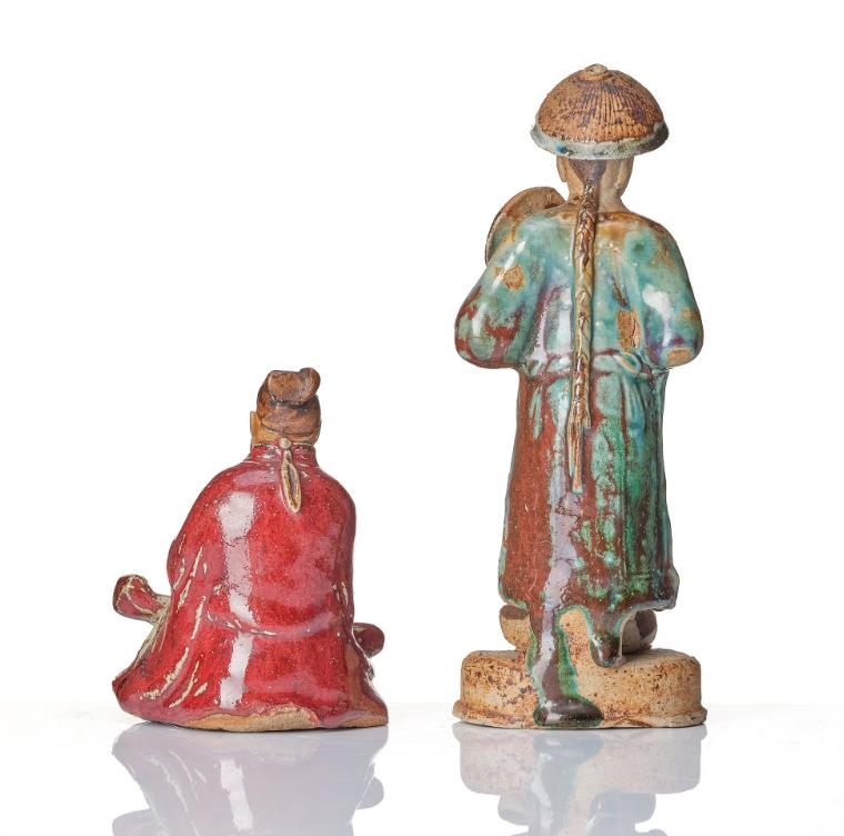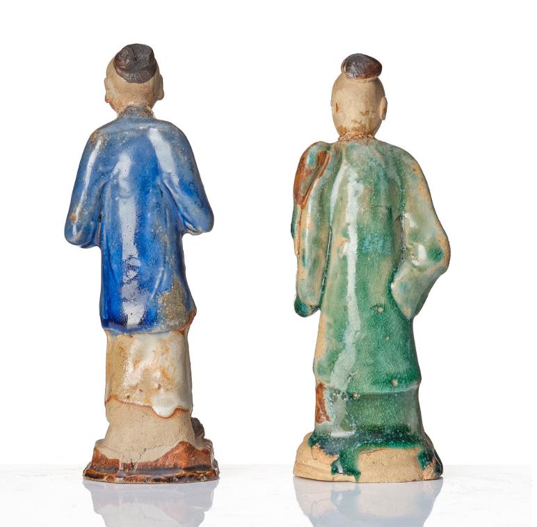 Of different models, glazed in green, red and blue colours. Height 10.5-21 cm. Wear, Chips. Repairs. Provenance From the Collection of Mr R. & Mrs A. Asplund 1905-1999, thence by descent. The image illustrated in the catalogue depicts the display cabinet in their home at Vasastan, Stockholm.