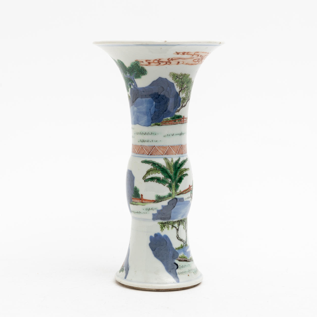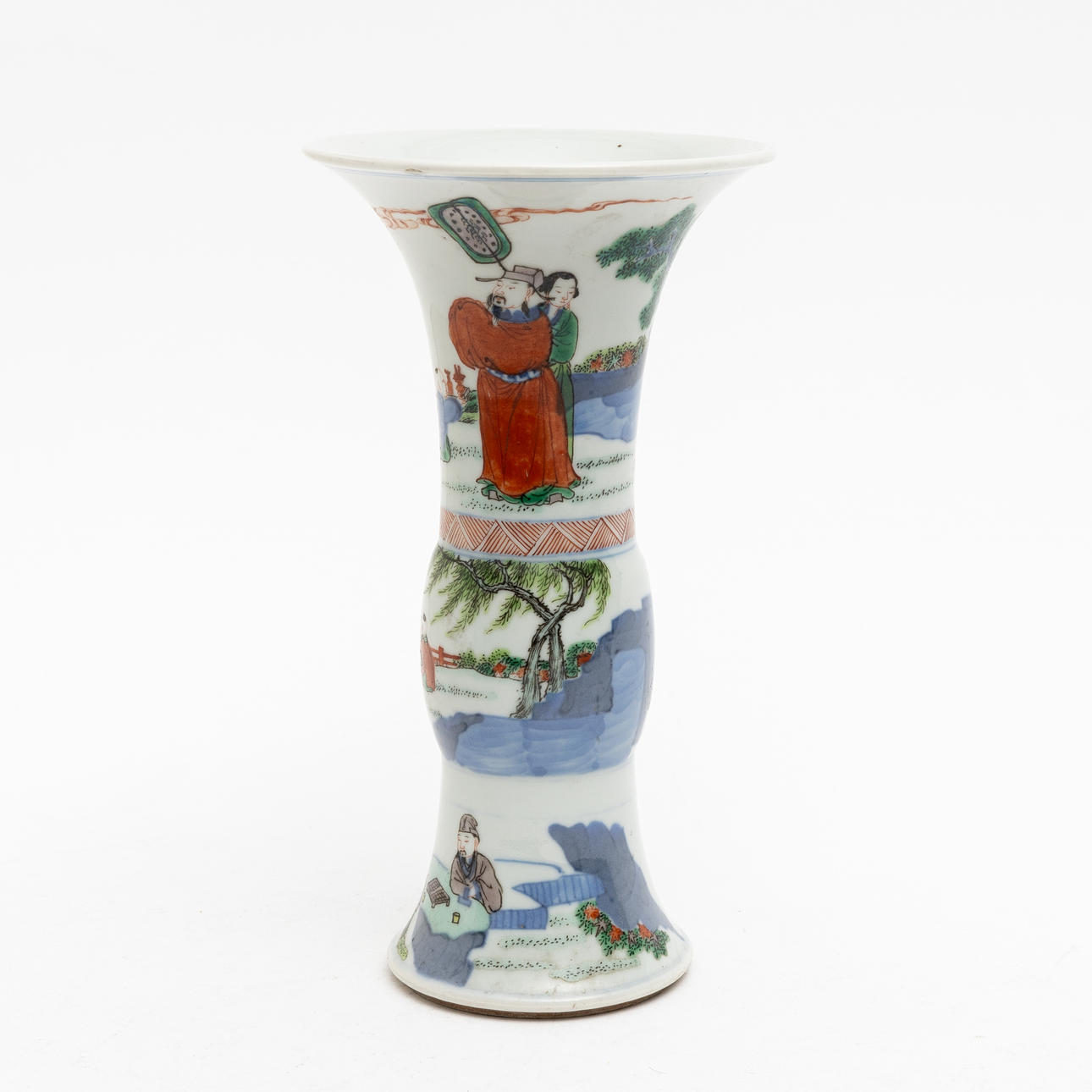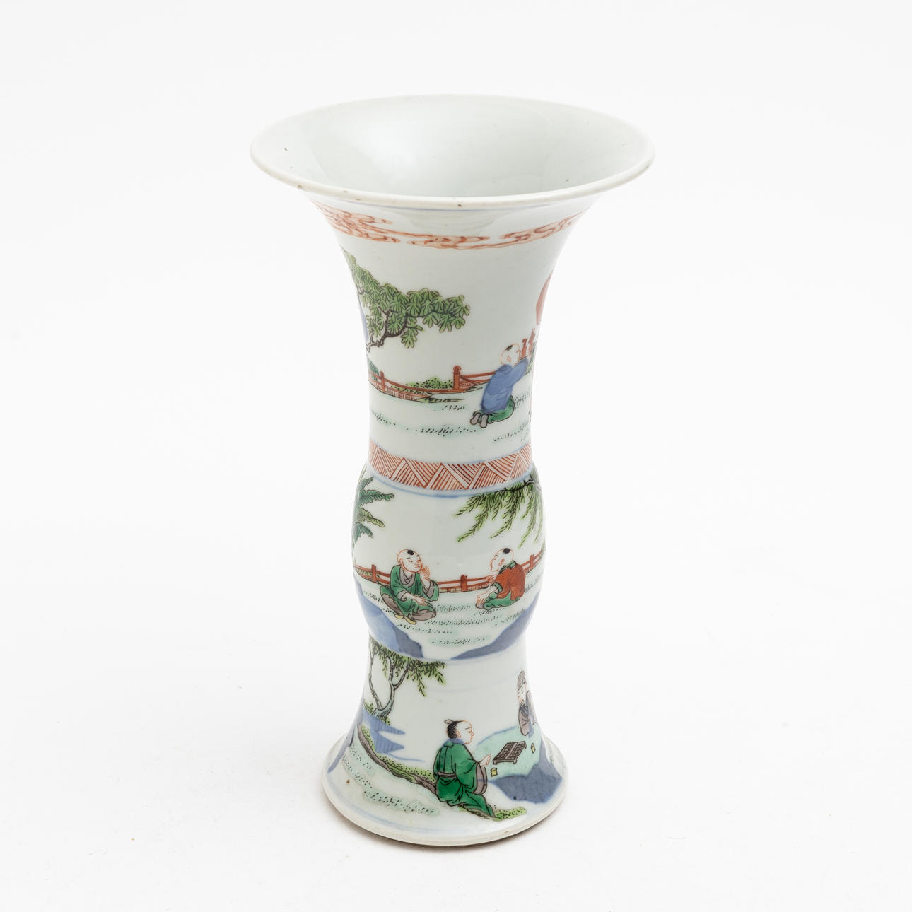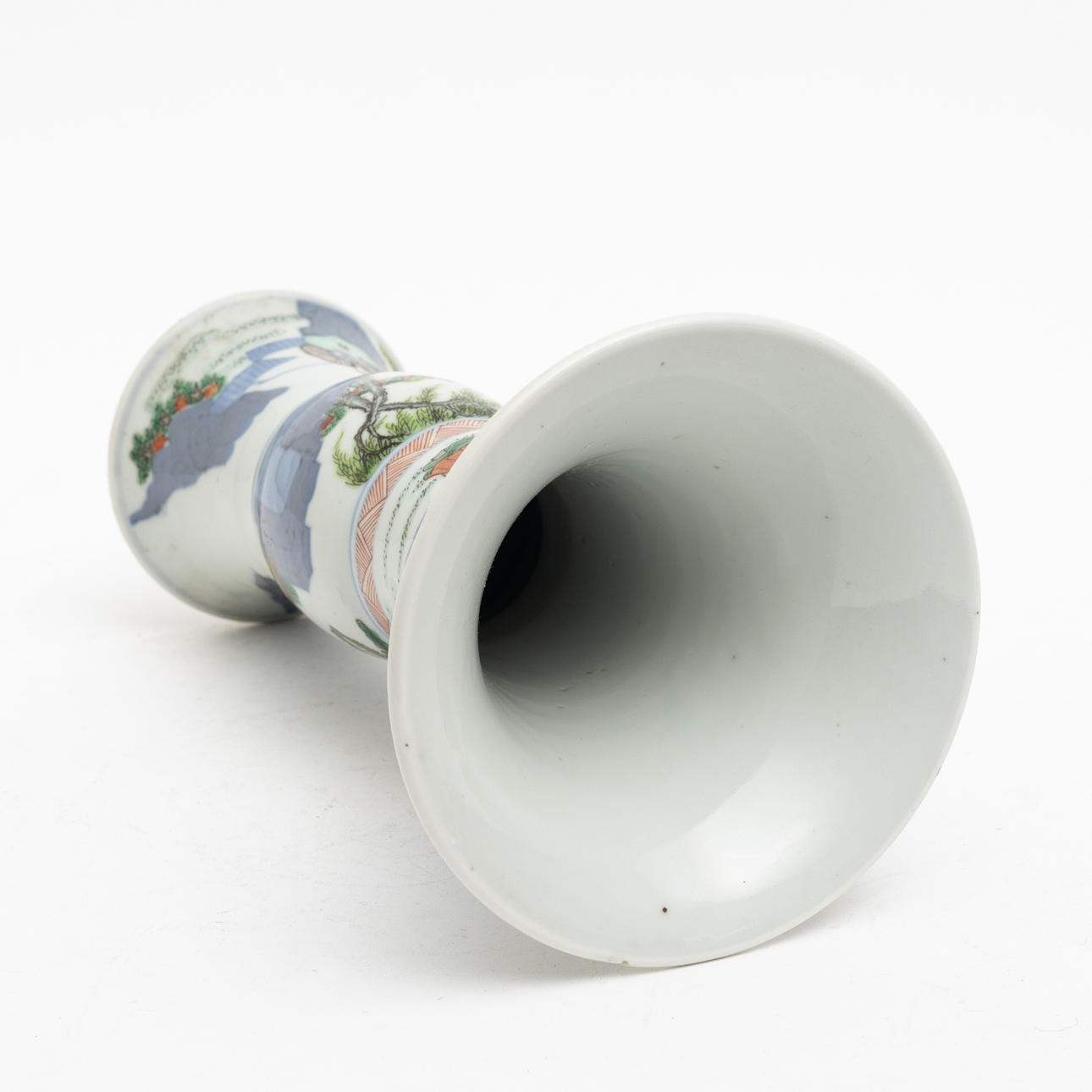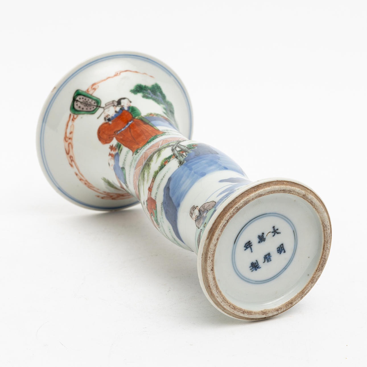 Underglaze painted porcelain with enamel colours, 19th century. Trumpet-shaped. Height approx. 23,5 cm. Condition Wear, minor edge notch, inscription underneath with invisible ink. 319912
