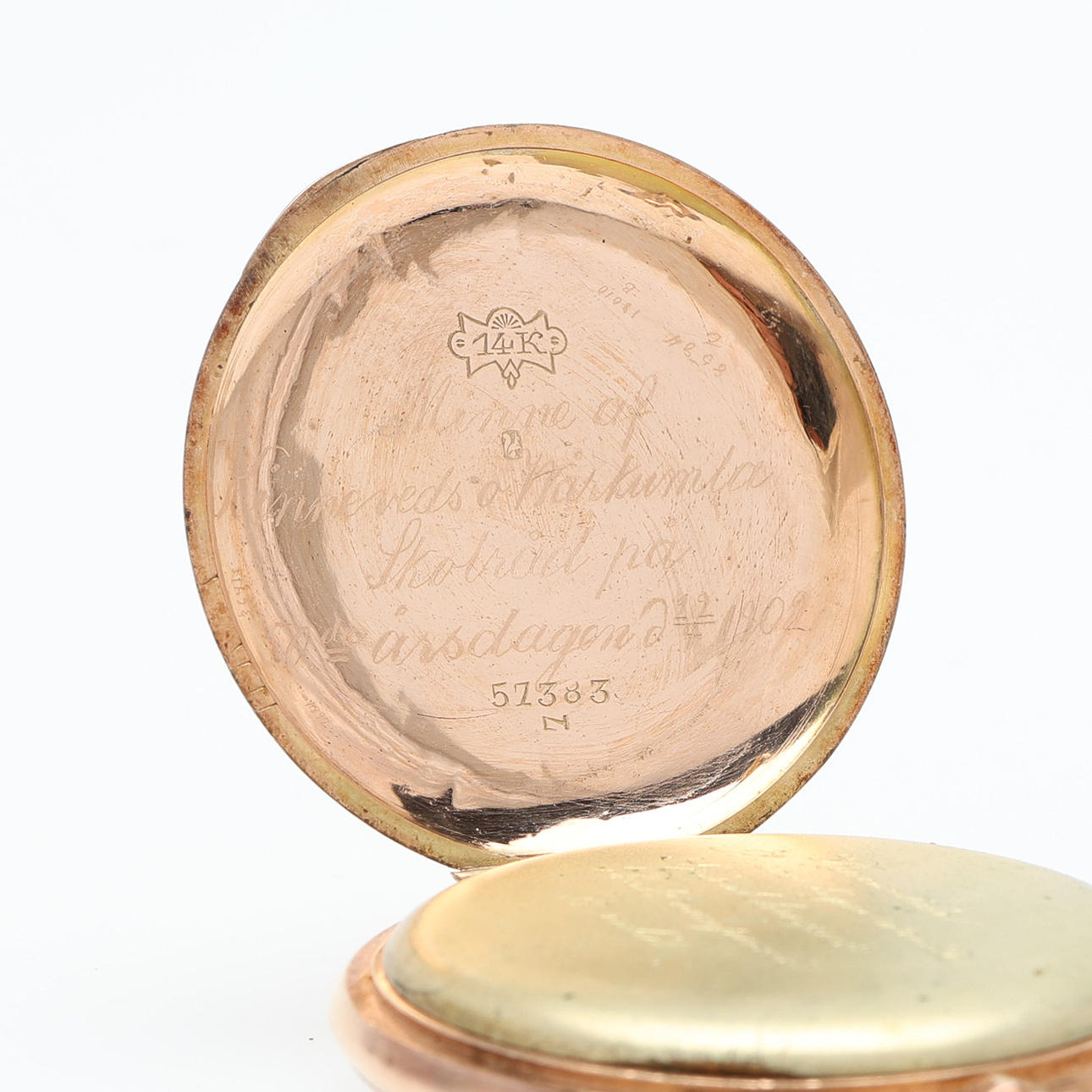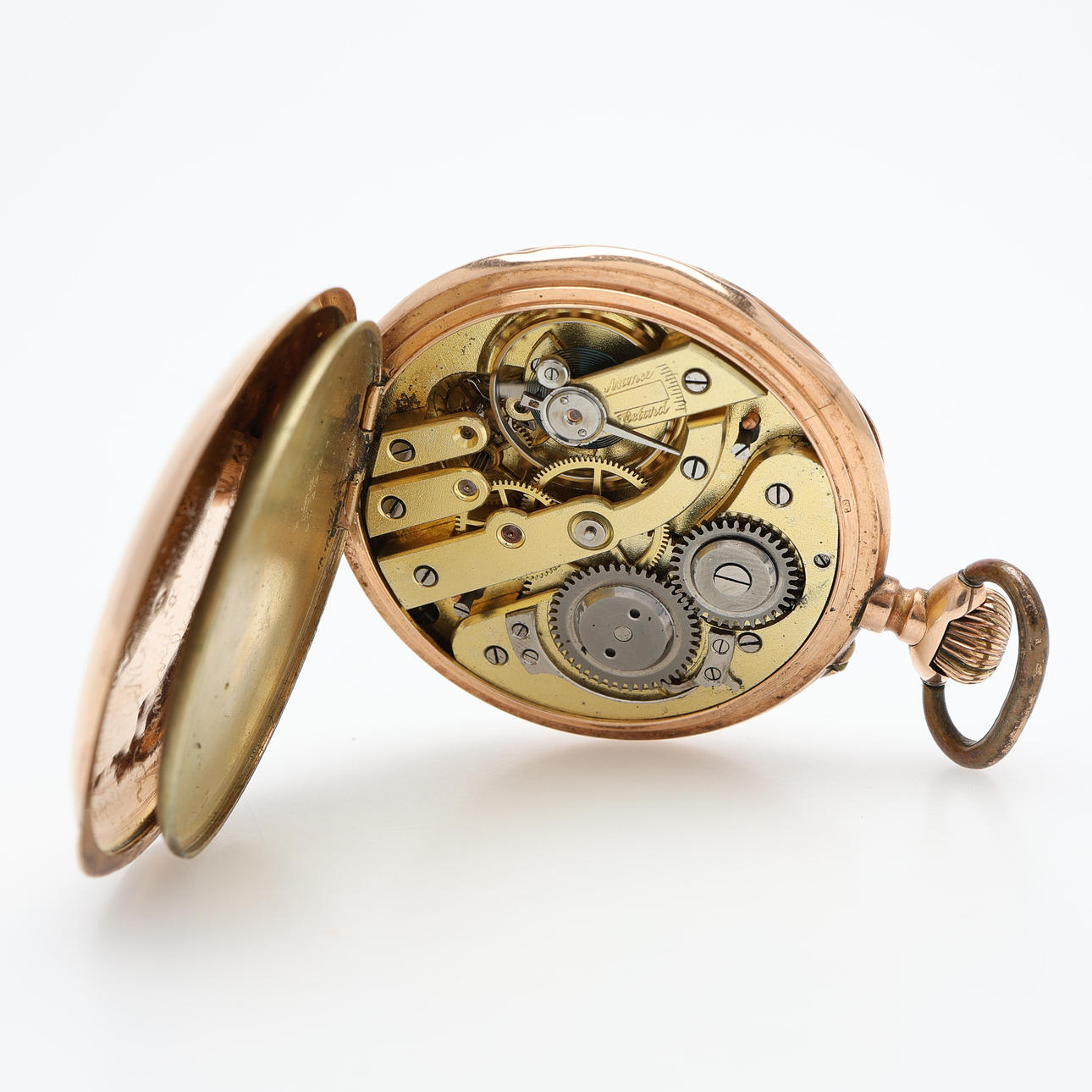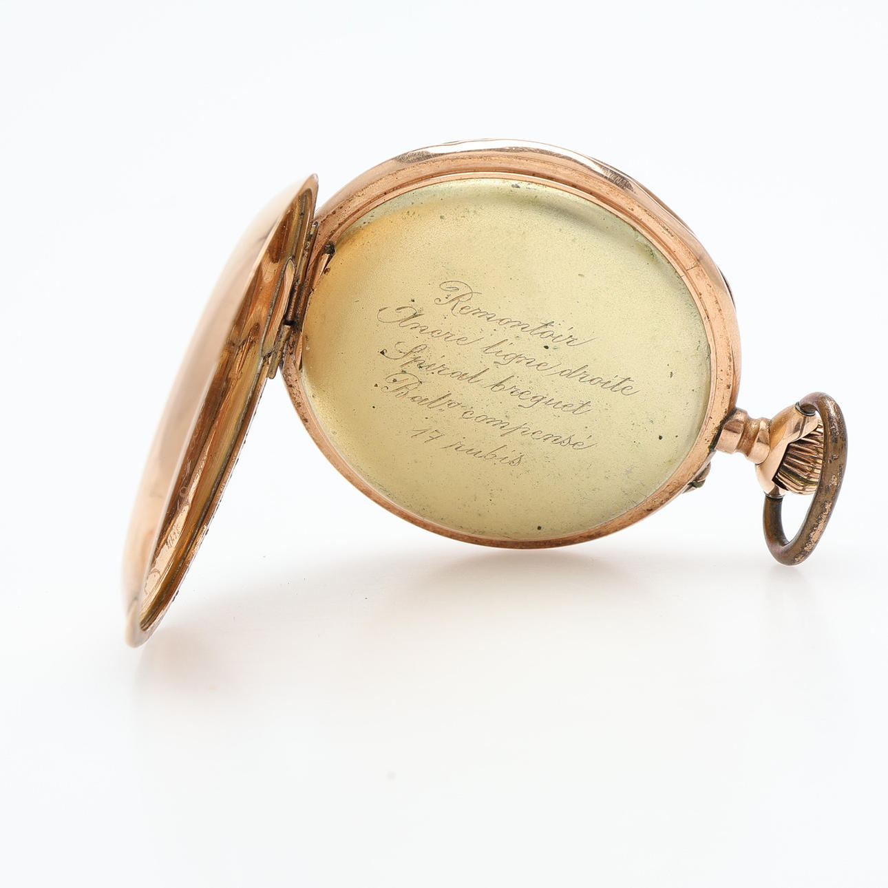 Anchor channel with crown commission, circa 1900, 74 g. Case marked 57383. Diameter 47.5 cm. Condition Worked at the time of cataloging. No functional warranty is provided. Gift engraved, dents. 124338
