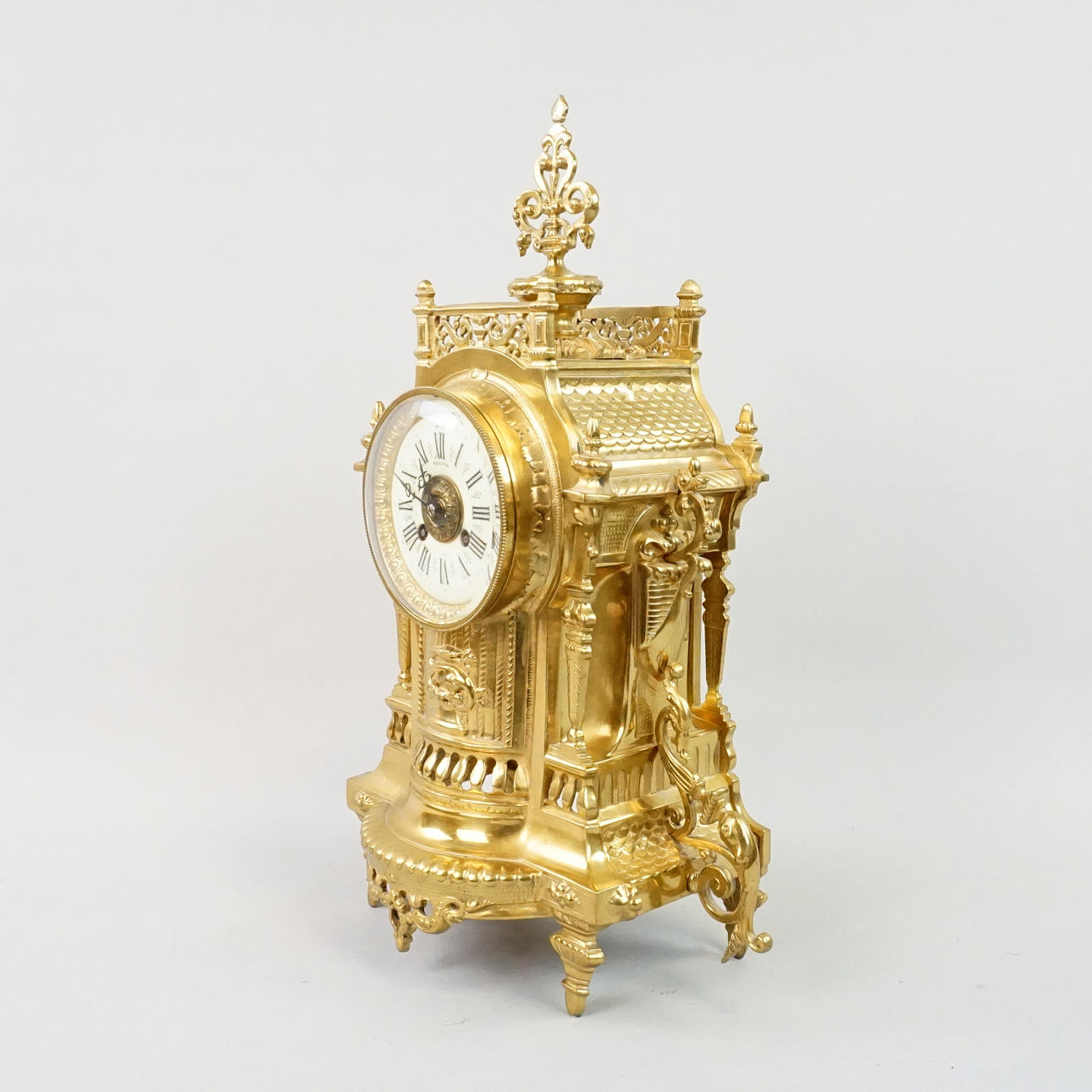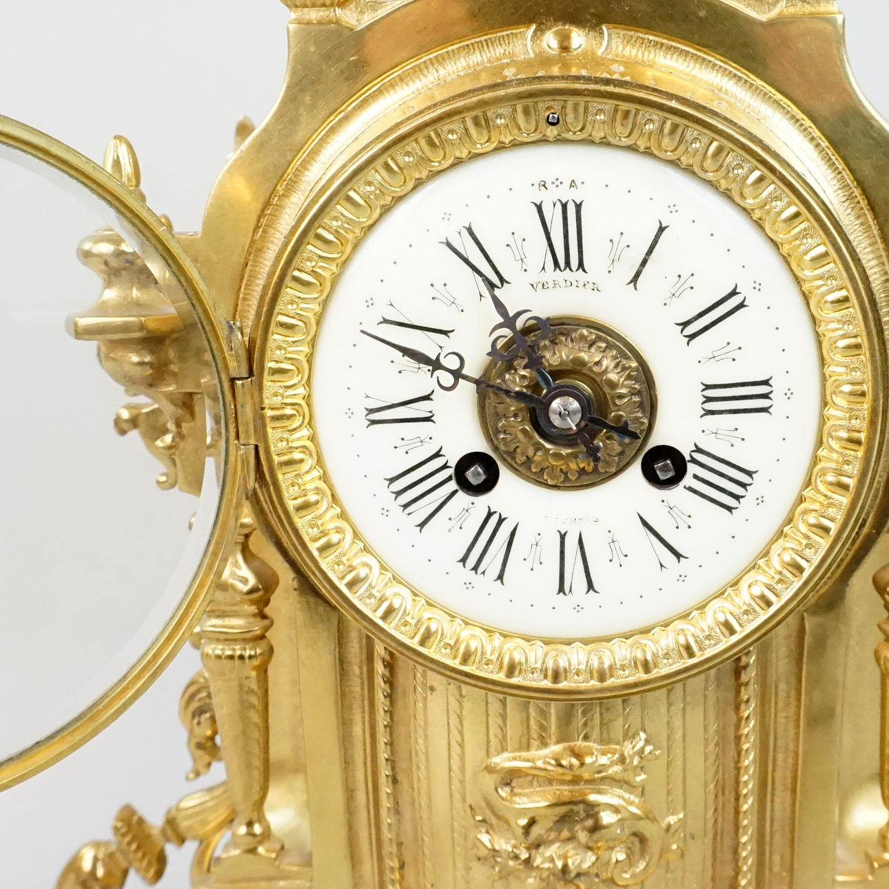 Table pendant with roman numerals, dial marked Verdier. Decor on front of fire-breathing dragon. The clockwork marked 827. Pendulum missing, Key is available. Height approx. 48 cm, width approx. 33 cm, depth approx. 16 cm. Condition Normal wear and tear, scratch on the front left side at the bottom. Not tested. No functional warranty is provided. Key/keys included. 12378