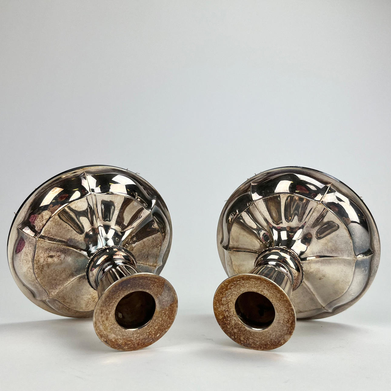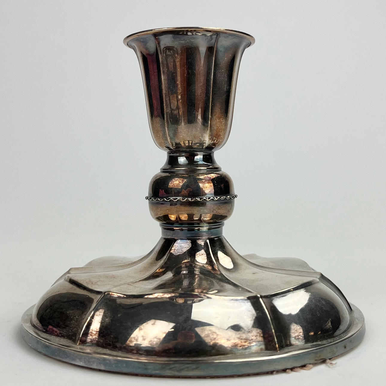 Stuffed. Total weight approx. 498g. Height approx. 10 cm. Condition Use and surface wear. A candlestick oblique. 6362