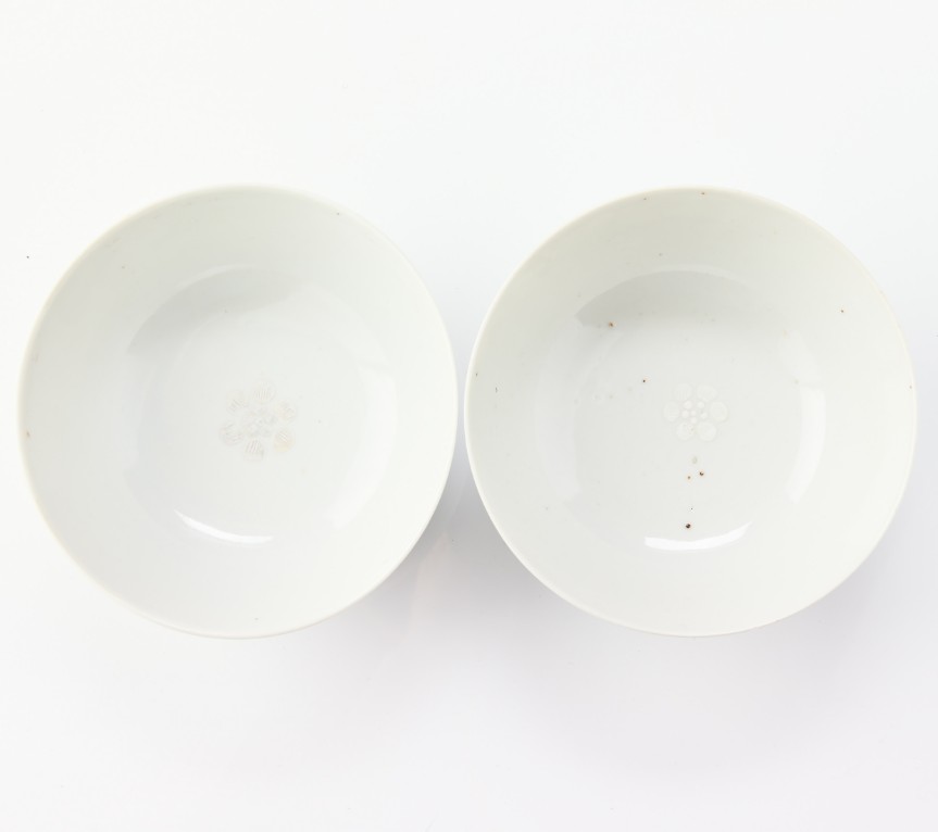 A Pair of Chinese Bianco-Sopra-Bianco-Decorated Porcelain 'Floral' Bowls Period: first half of the 18th century. Height: 6.5 cm, diameter: 14 cm.