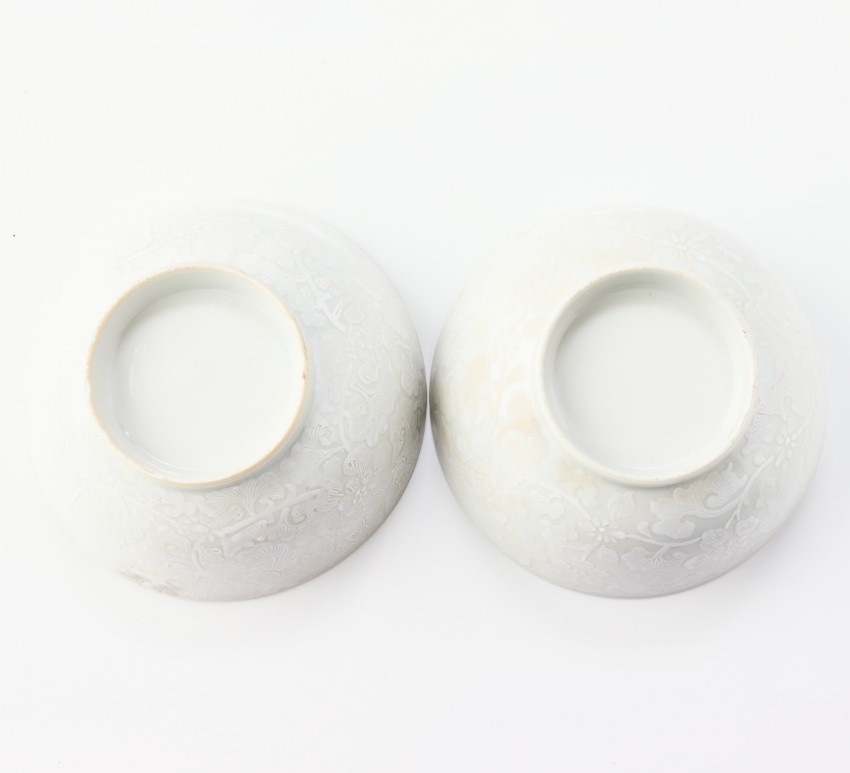 A Pair of Chinese Bianco-Sopra-Bianco-Decorated Porcelain 'Floral' Bowls