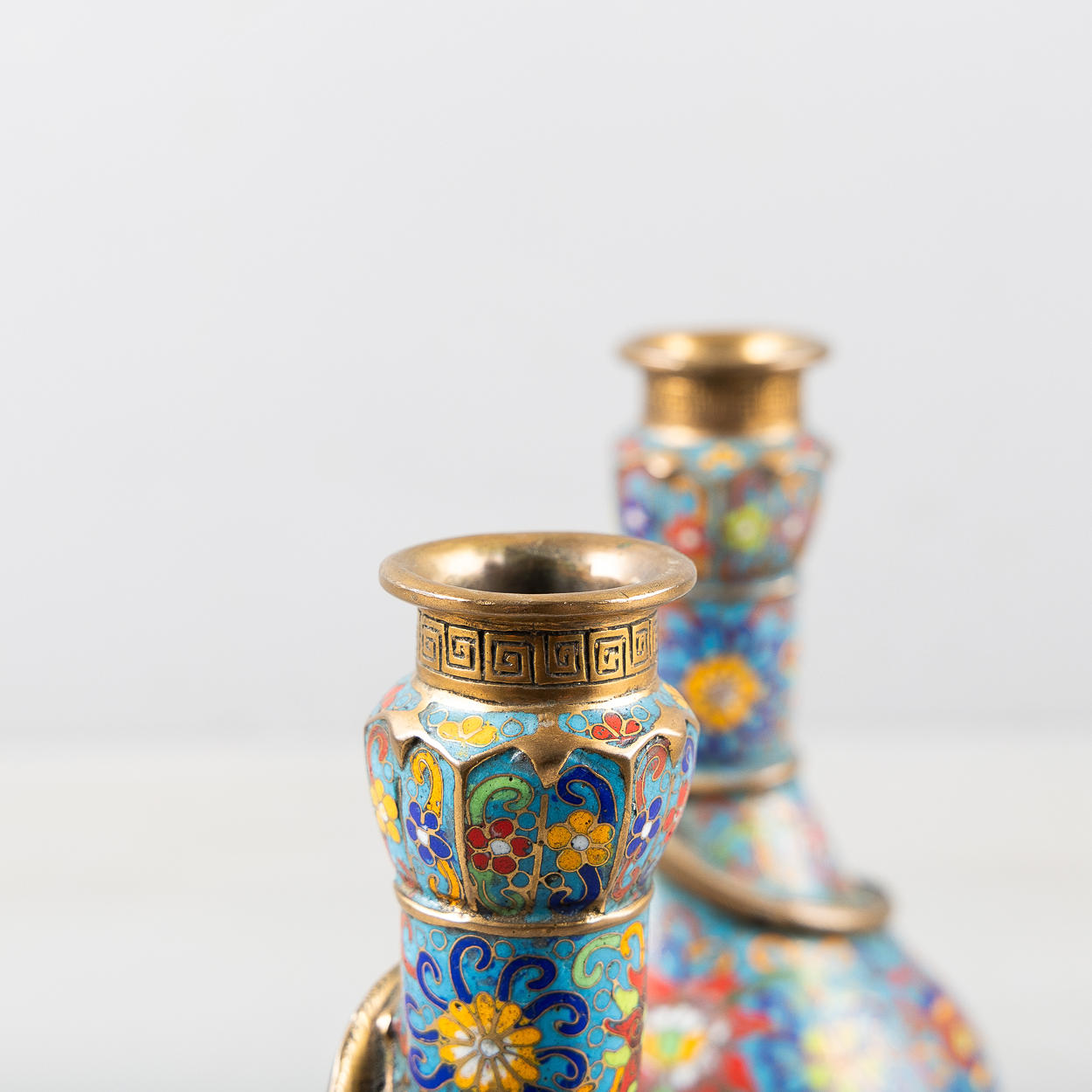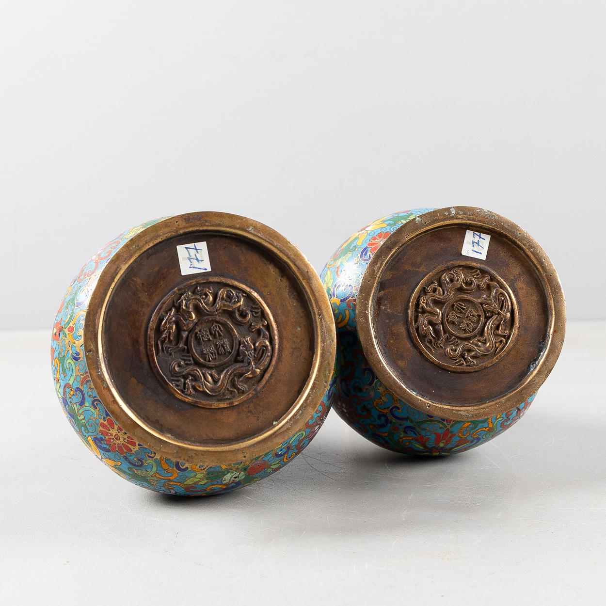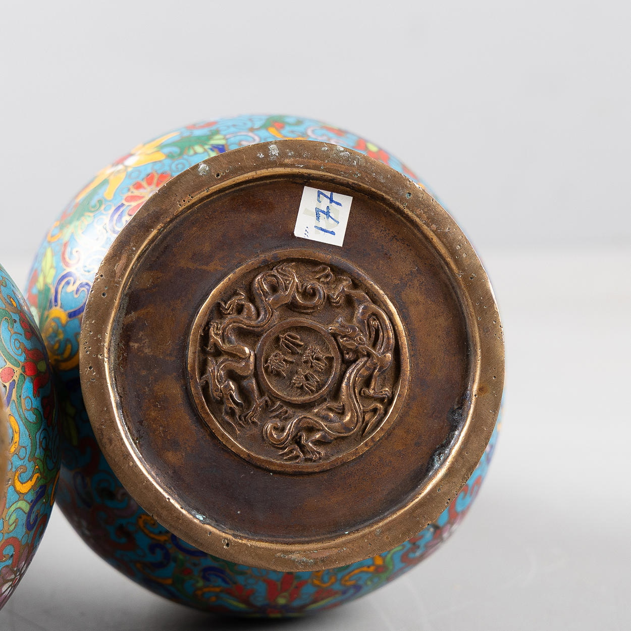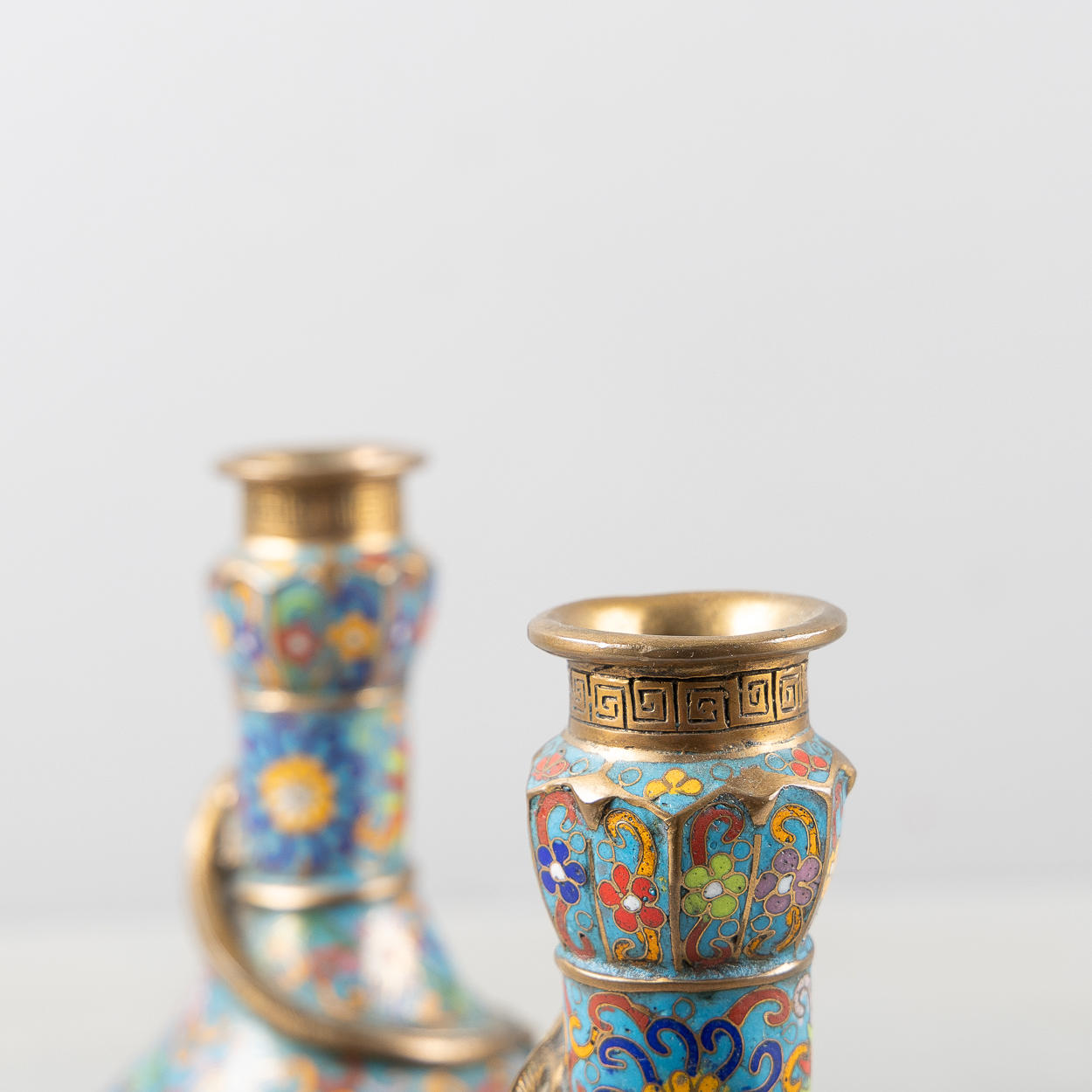 Probably China, decor with dragon, marking on the bottom, heights approx. 22 cm, case, height 14, 32x28 cm. Condition Normal wear and tear. 69614