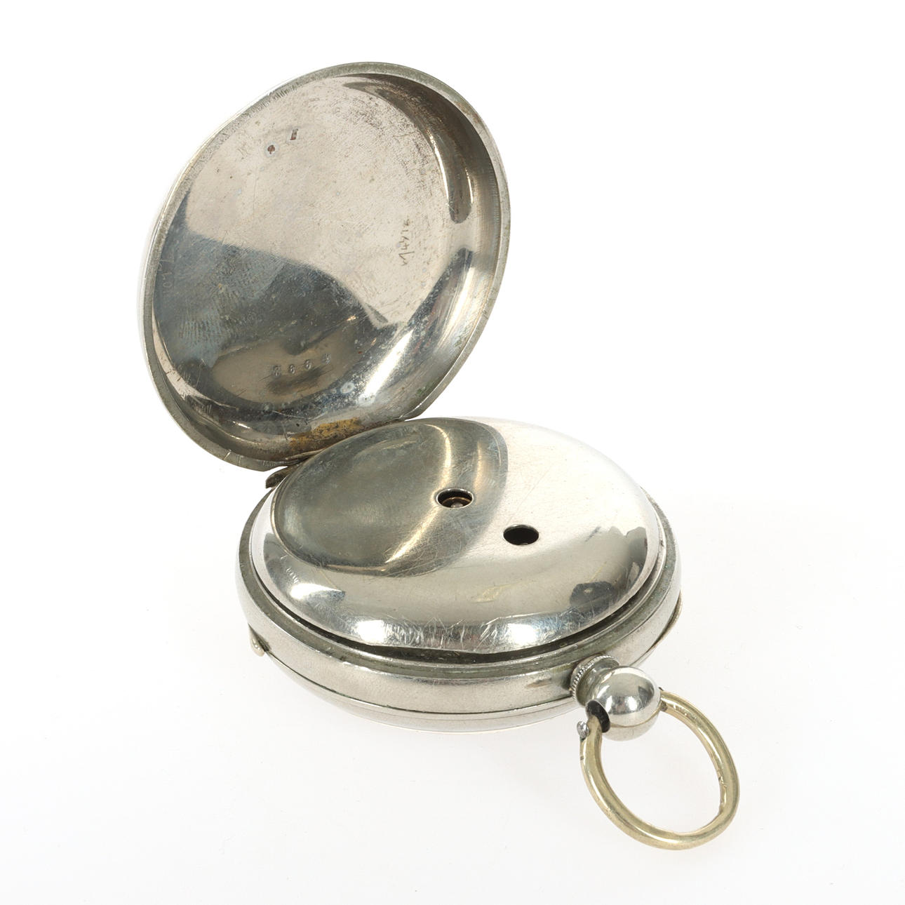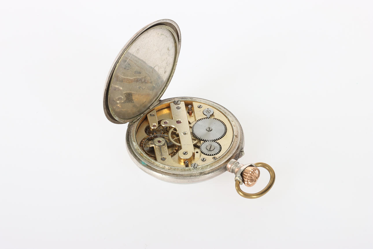 1 pocket watch, white metal, mechanical. Marked the No. 1627290. Size about 50.1 mm. 1 pocket watch, 1/2 Chronometre, 15 ruby, silver, mechanical. Back with siselings, outer case silver. Marked .800, the No. 58161. Size about 51,7 mm. 1 pocket watch, white metal, keychain. Marked 7884. Size about 53,7 mm. 1 pocket watch, Cylinders 10 rubis, white metal, mechanical. Marked no. 42921.3 Cylinders 10 rubis. Clockwork marked Avance Retard. Size approx. 47,3 mm. Watch case in white metal, marked 23. Condition Pocket Watch ½ Chronometre was working at the time of enrollment. The others did not work. No functional warranty is provided. Normal wear and tear. Scratches, cracks, as well as dents occur. 64530