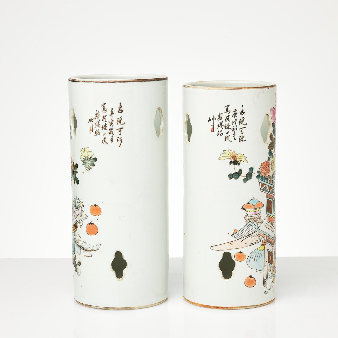 A pair of painted vase and calligraphy wigs.