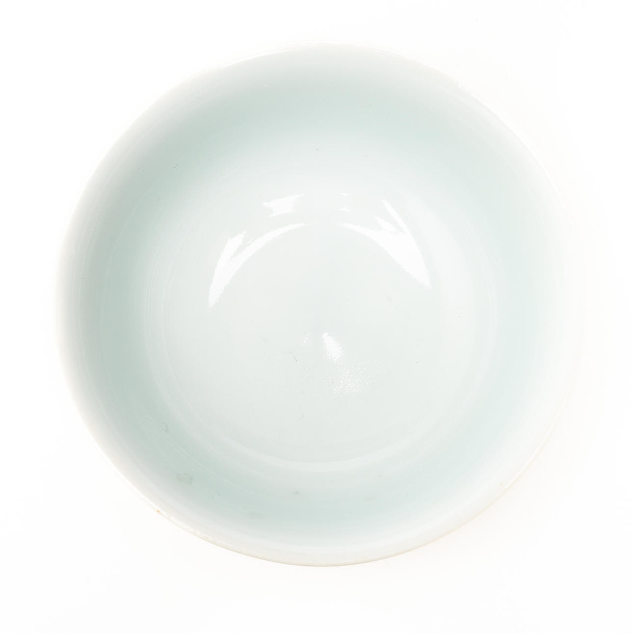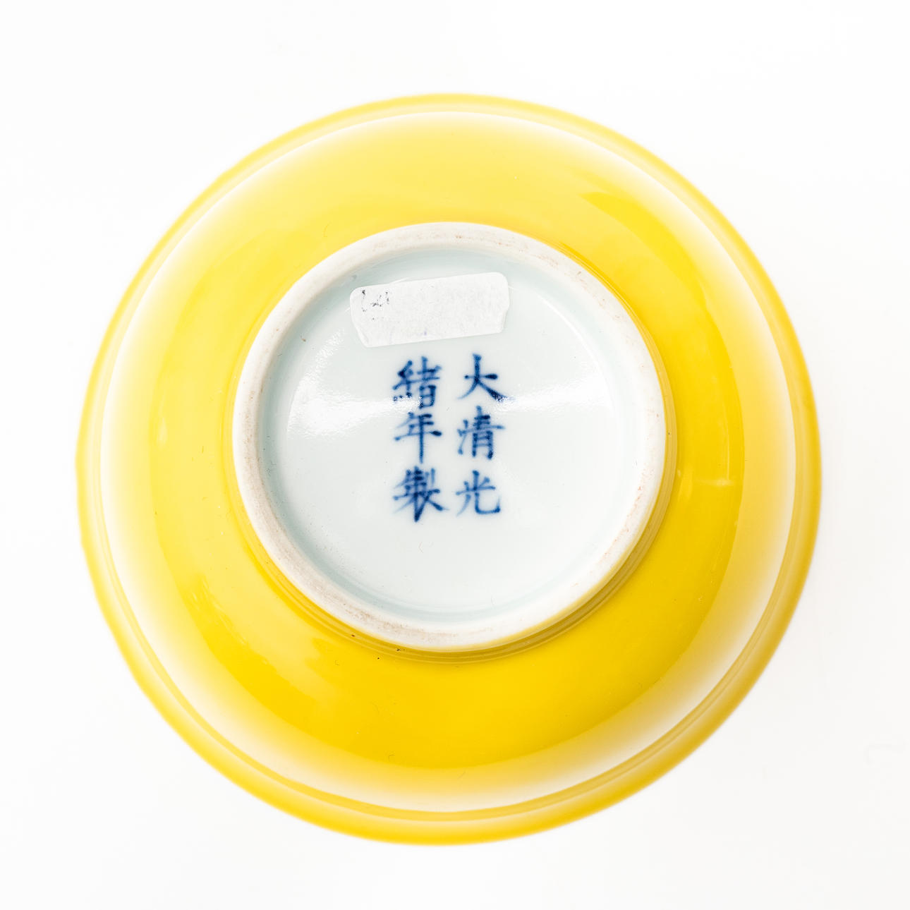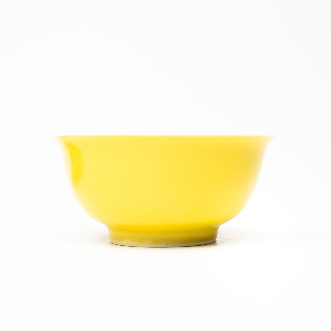 A pair of bowls with yellow monochrome glaze, diam. 11, height 5.5 cm. Condition Wear and tear.
