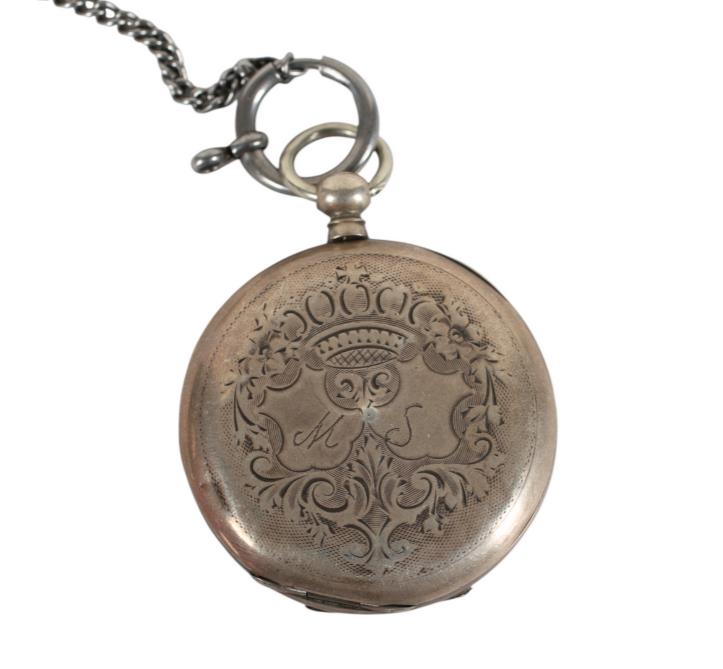Weight approx. 79,91 grams,Diameter about 51.5 mm. Comes with chain and with mission keys. Condition Cracks in enamel, trunk with dent. 97983