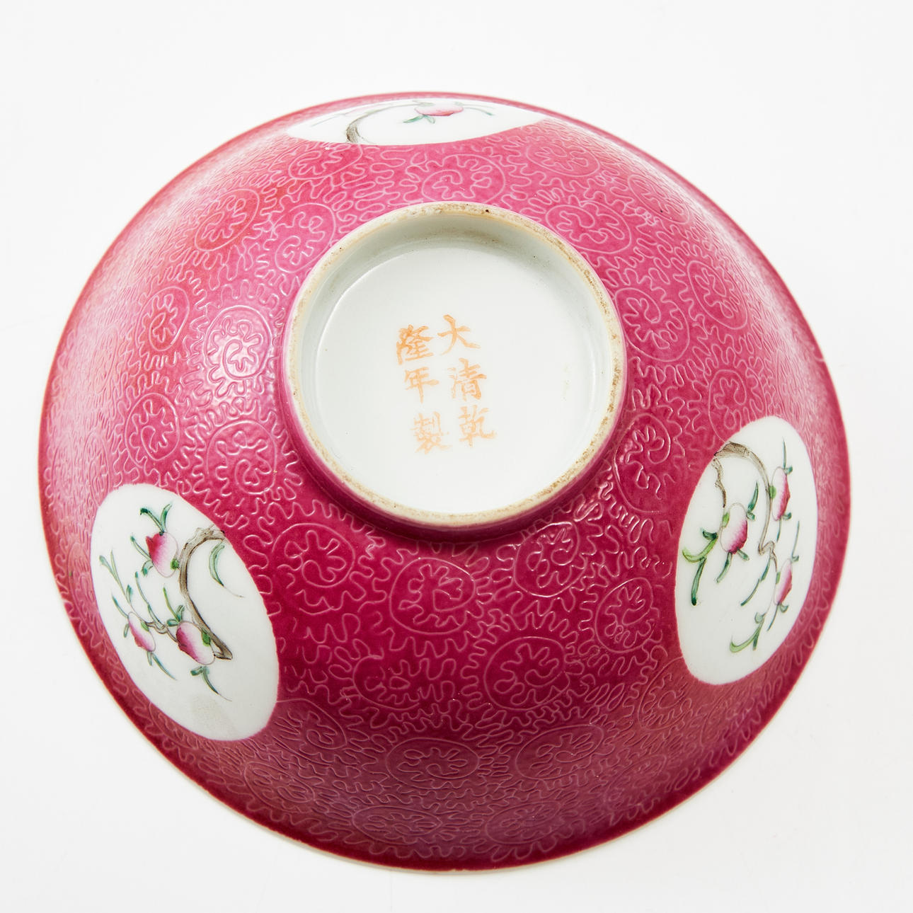 Sgraffito, decor of recessed medallions with peaches, Guangxu six character mark. Diameter approx. 12.5, height 5 cm. Condition Minor wear. 238827