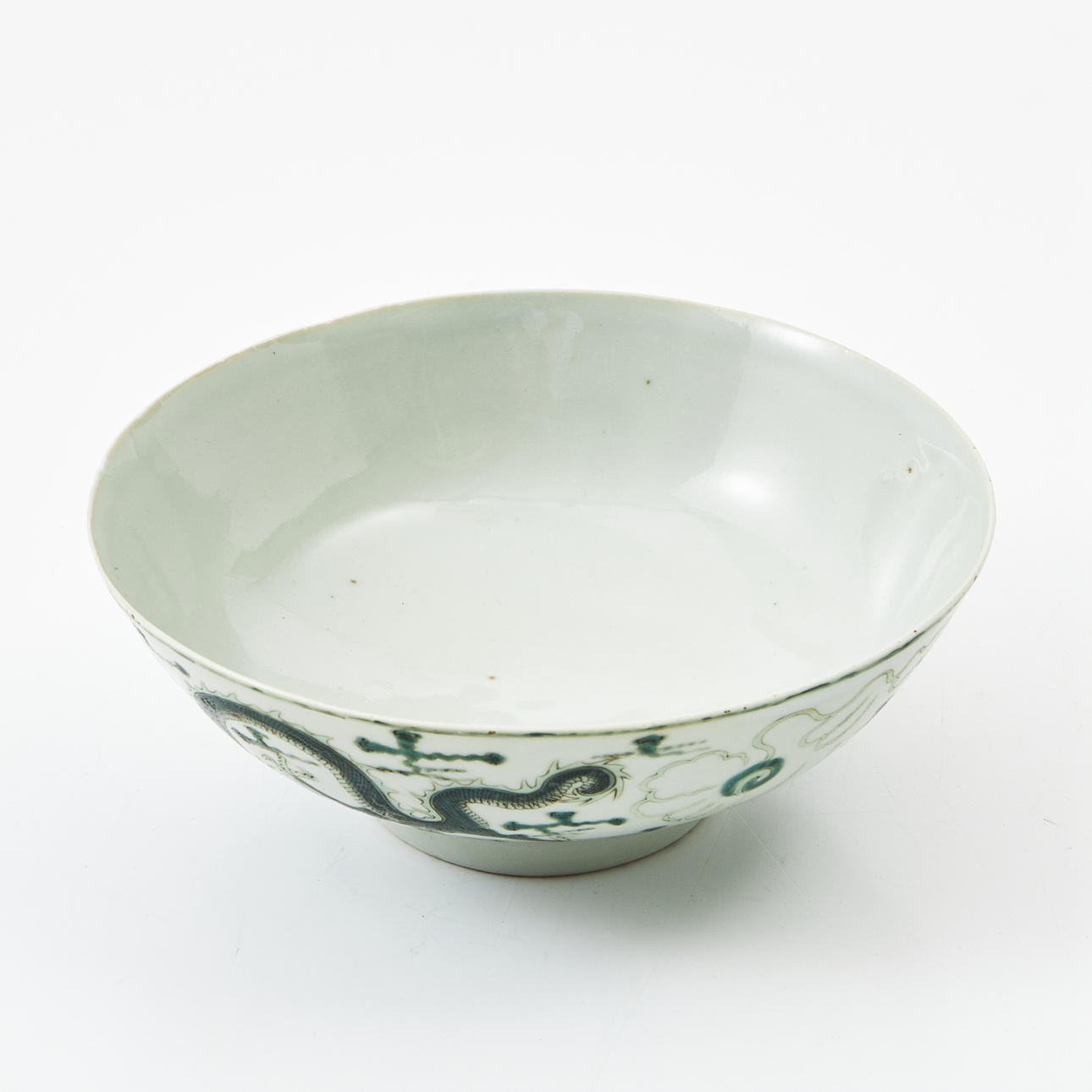 Decoration of dragons with the burning pearl in enamel colors and sepia, Guangxu six character mark. Diameter approx. 16, height 6 cm. Condition Chips, crackling. 206429