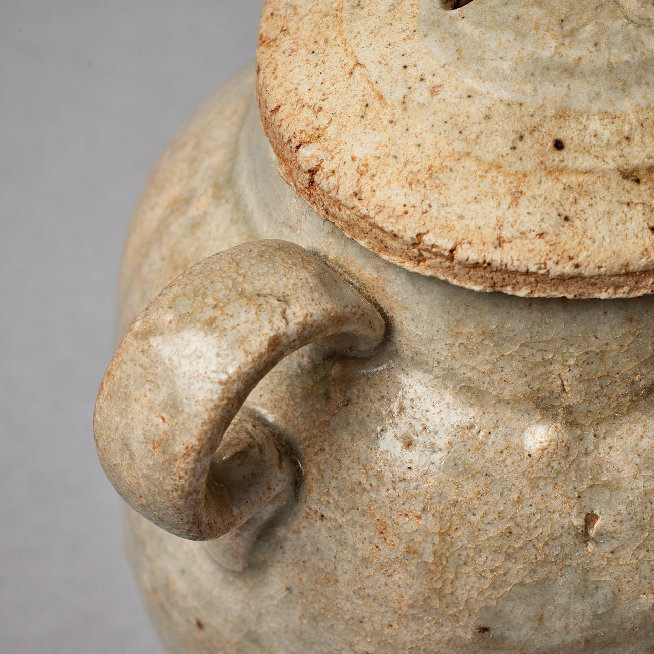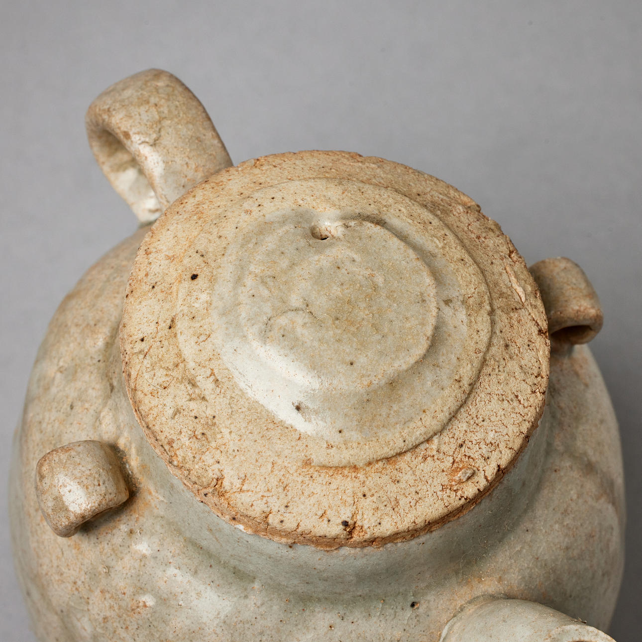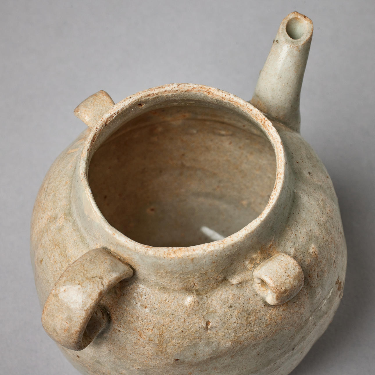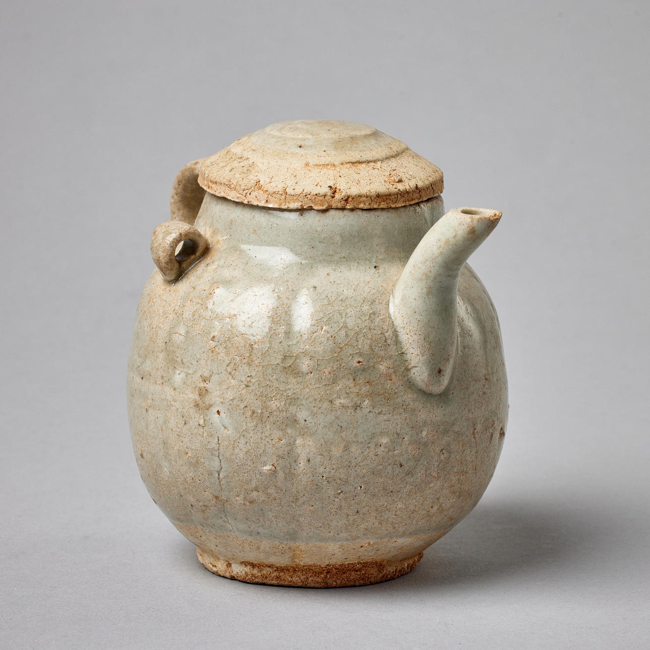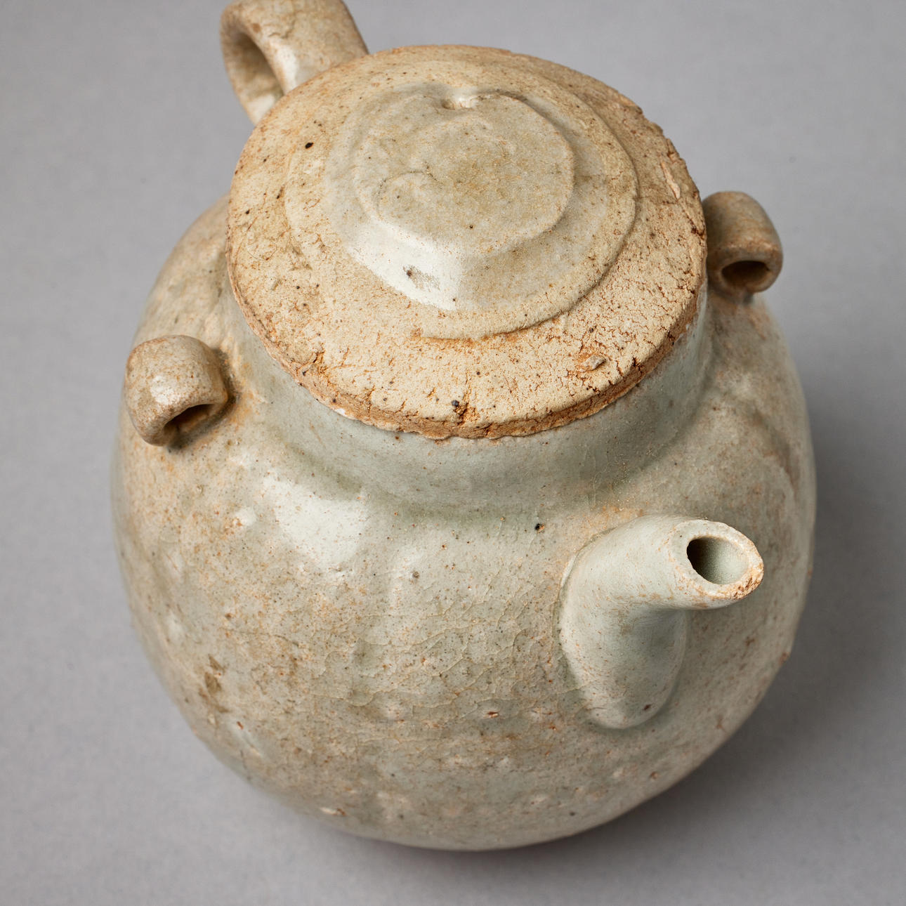 Lobed 'melon' shape, height c. 11 cm. Condition Wear and firing defects. The spout and cover with minor nicks. No repairs found with UV-light.