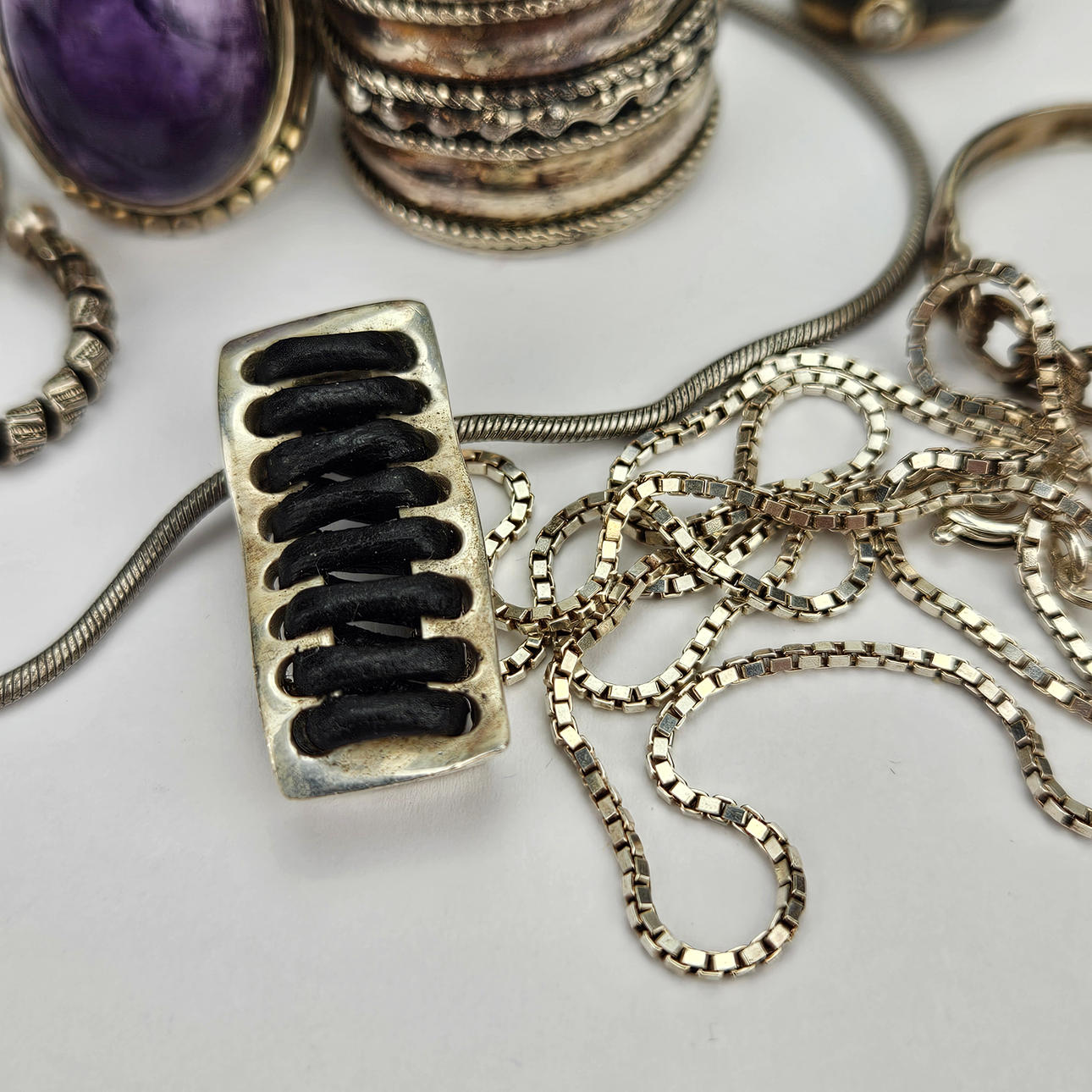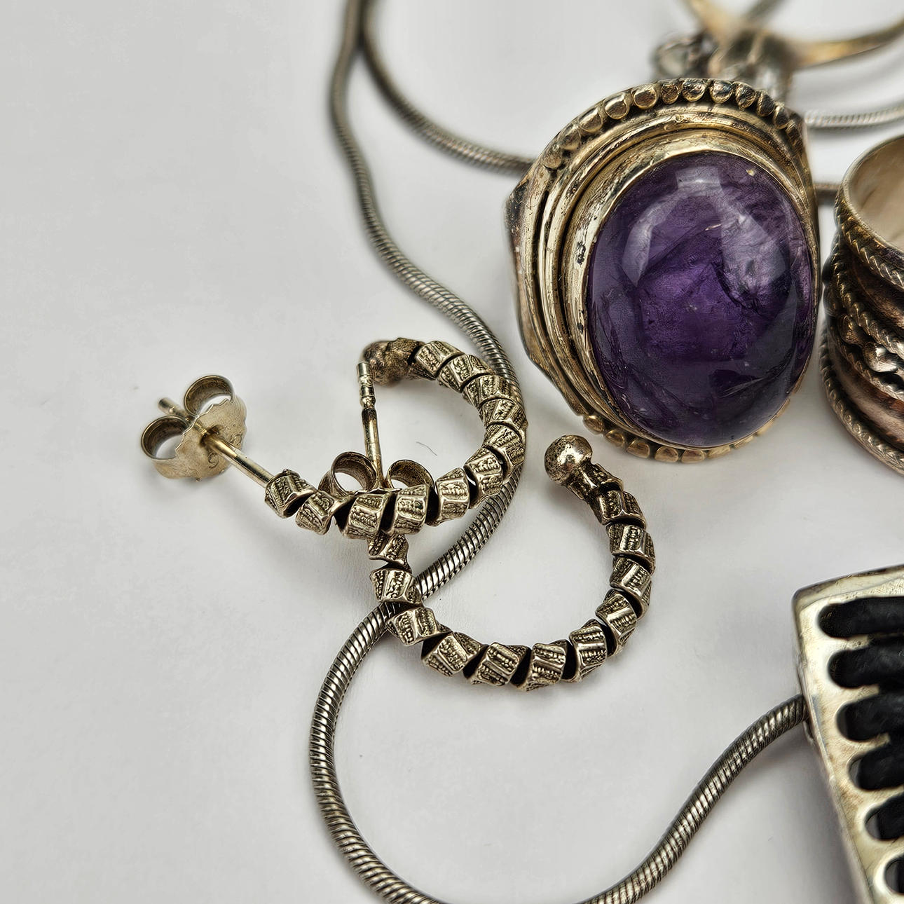 Rings, earrings, necklaces. Condition Dents. A ring not stamped. 20671