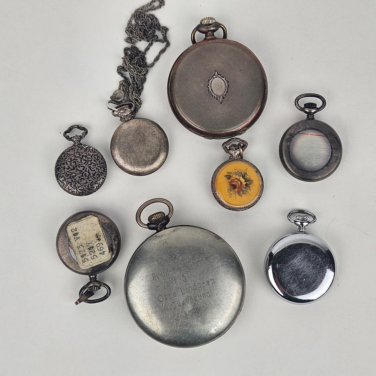 Approx. 25-48 mm. Condition One with damage, parts missing. One, sages are missing. Pocket watch, Viking, worn glass. Not functional tested, not fully reviewed, no functional warranty is provided. 12203