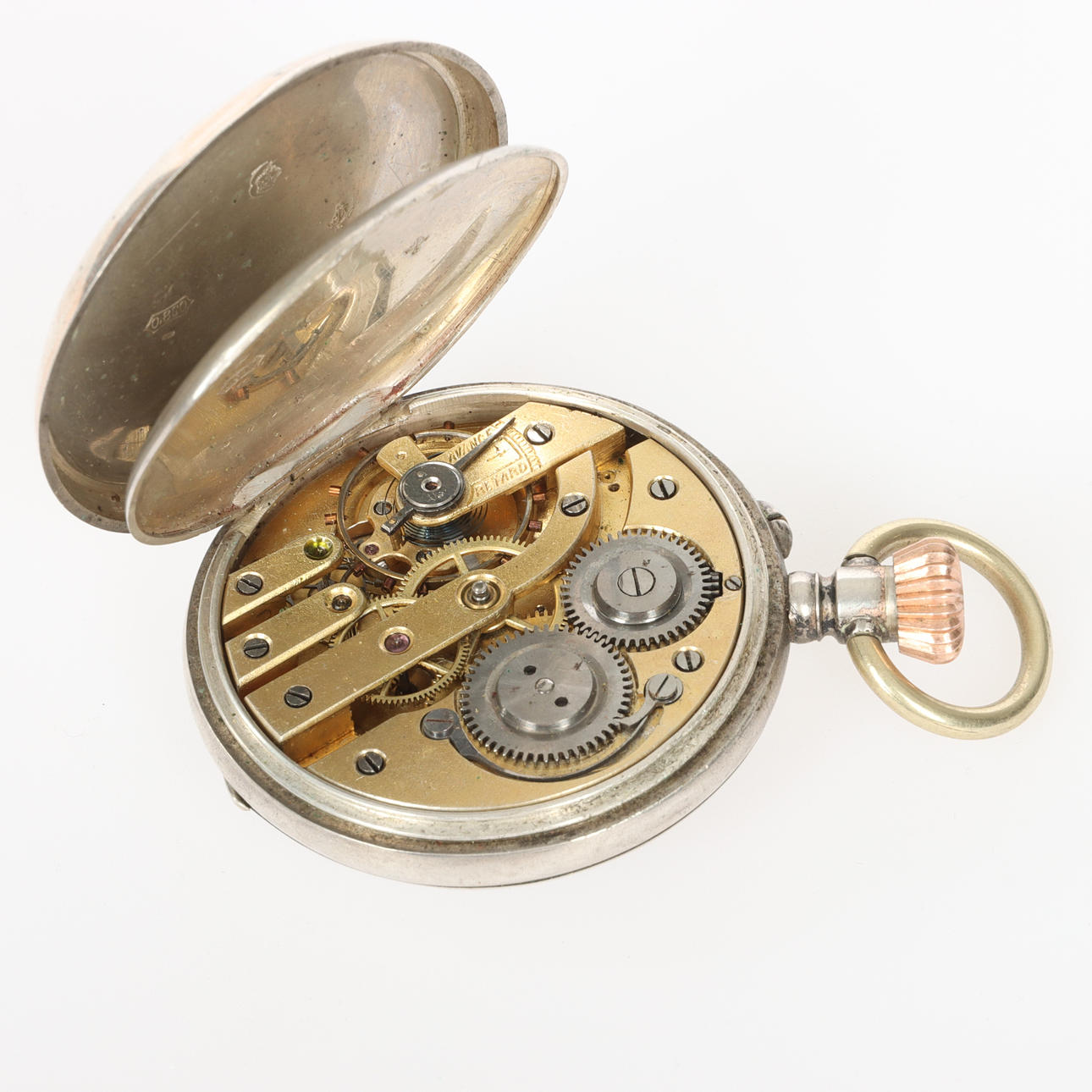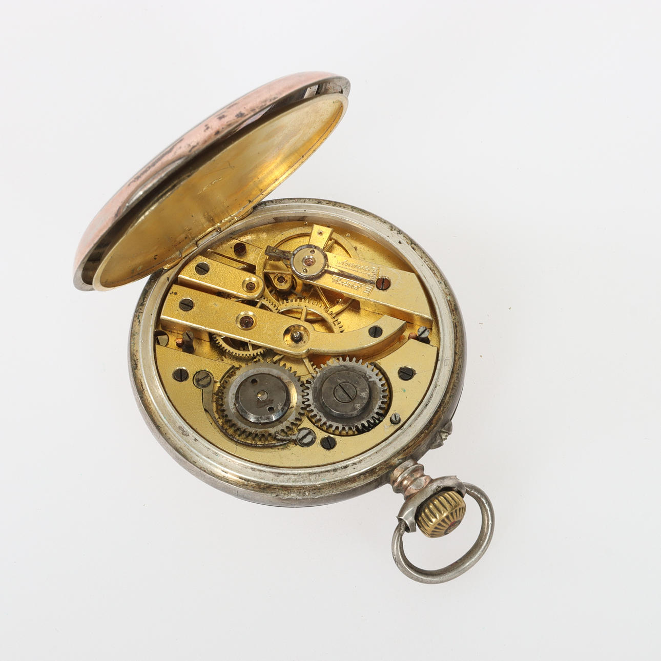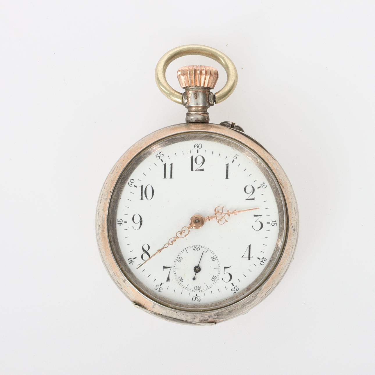 1 pocket watch, silver, mechanical. Inner and outer case in silver. Marked .800, the No. 30582. Clockwork marked Avance Retard. Size approx. 47,5 mm. 1 pocket watch, Cylindre 10 ruby, silver, mechanical. Back with siselings, outer case silver, partly gilt, marked 0,800, no. 17301. Clockwork marked Avance Retard. Size approx. 46,5 mm. 1 pocket watch, silver, mechanical. Back with siselings, outer case silver, partly gilt, marked no. in 15966. Size approx. 45,3 mm. Condition Watch with no. 15966 was functioning at the time of enrollment. The others did not work. No functional warranty is provided. Gilding removed. A pocket watch with a later crown. Scratches occur as well as dial with damage. 64531