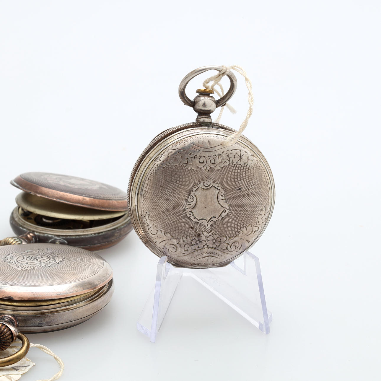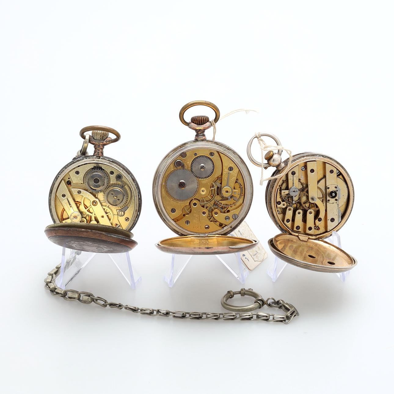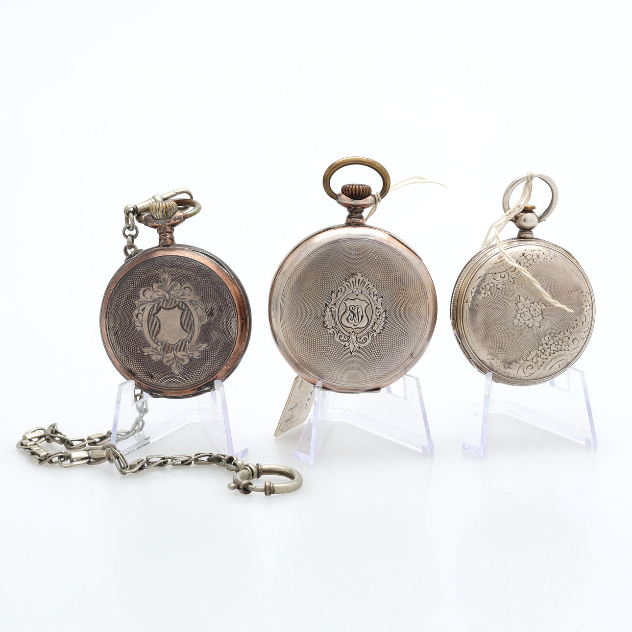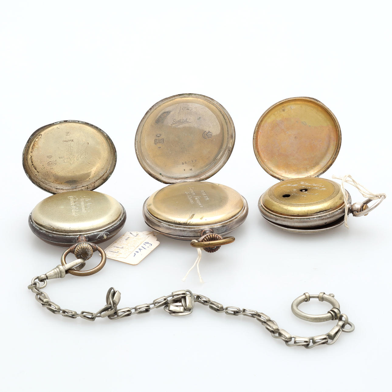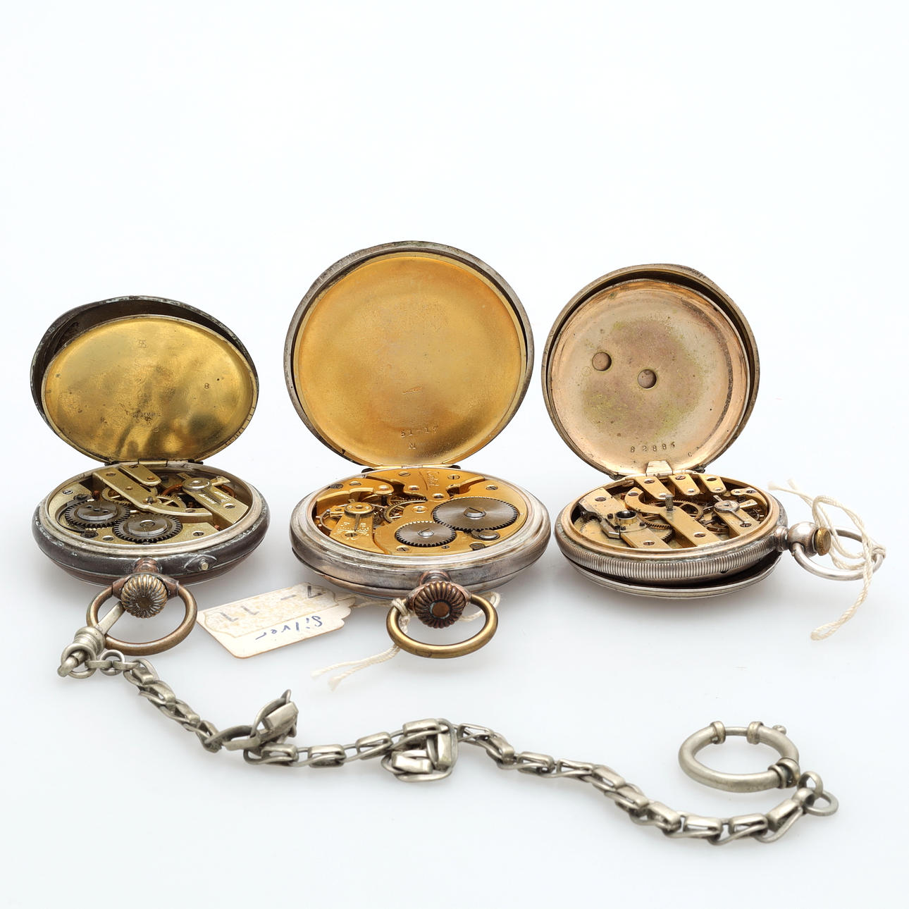 A set of three silver pocket watches.