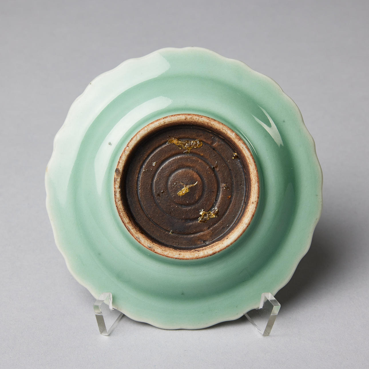 Description an everted foliate rim decorated with meander bands encircling a central lotus blossom, 18/19th century, diameter c. 12.5 cm. Fitness report Wear and firing defects. Minor loss of glaze at the rim 22330