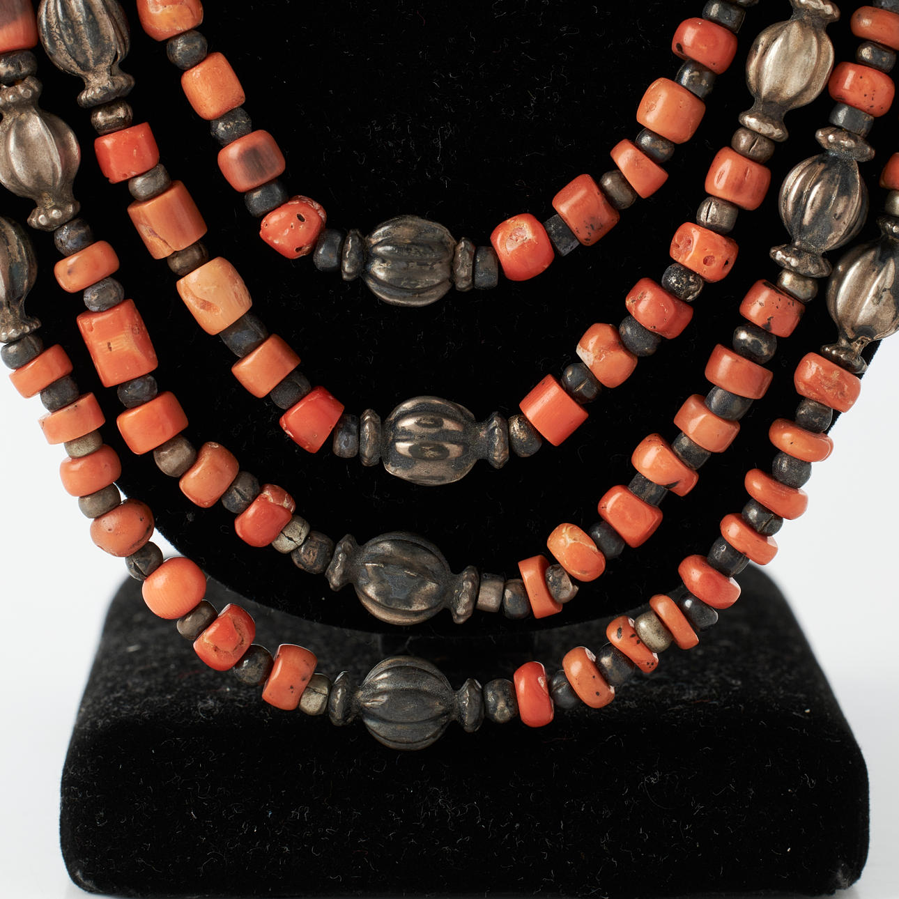 A sterling silver necklace, coral, possibly Tibet, first half of the 20th century.