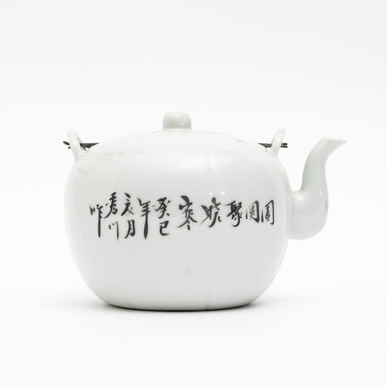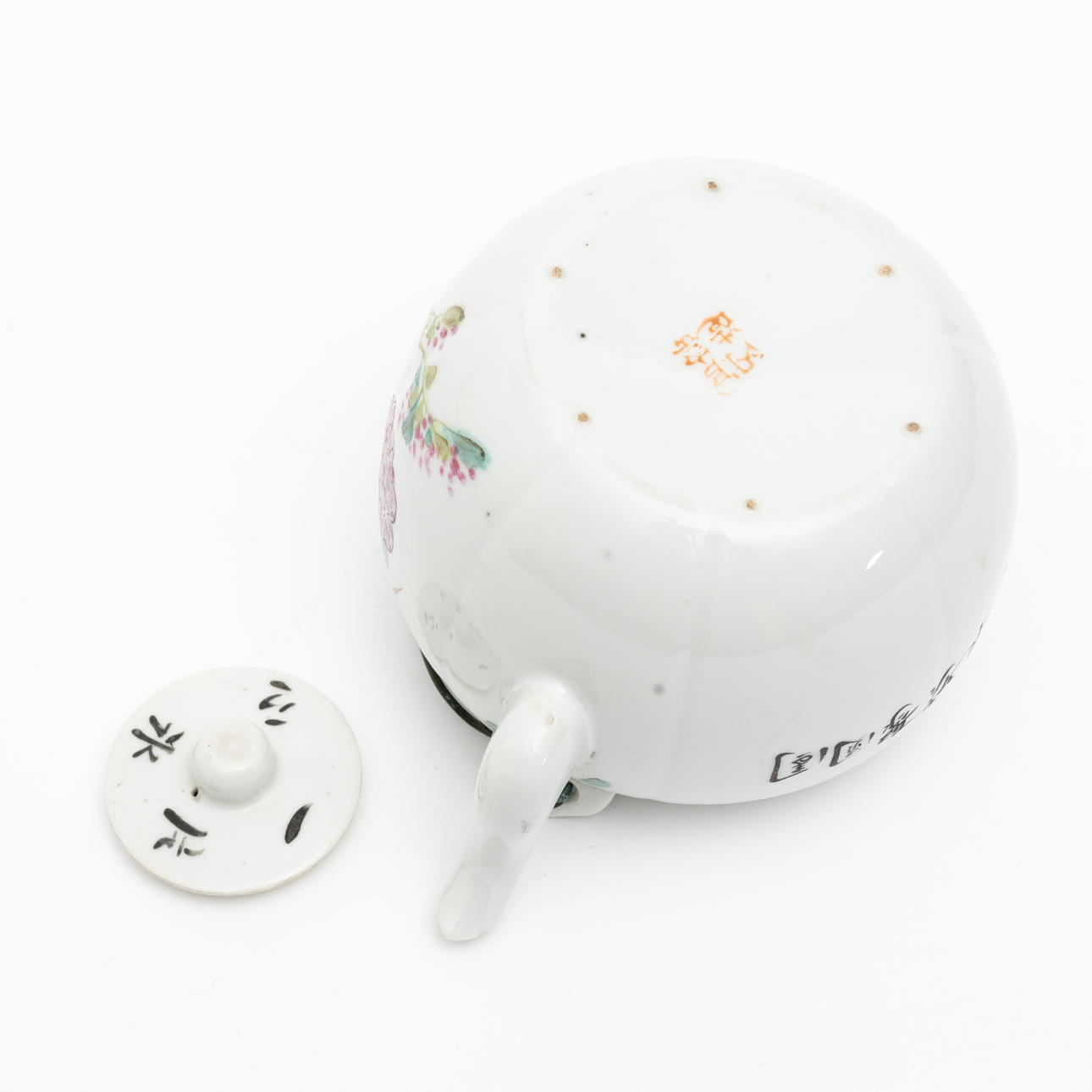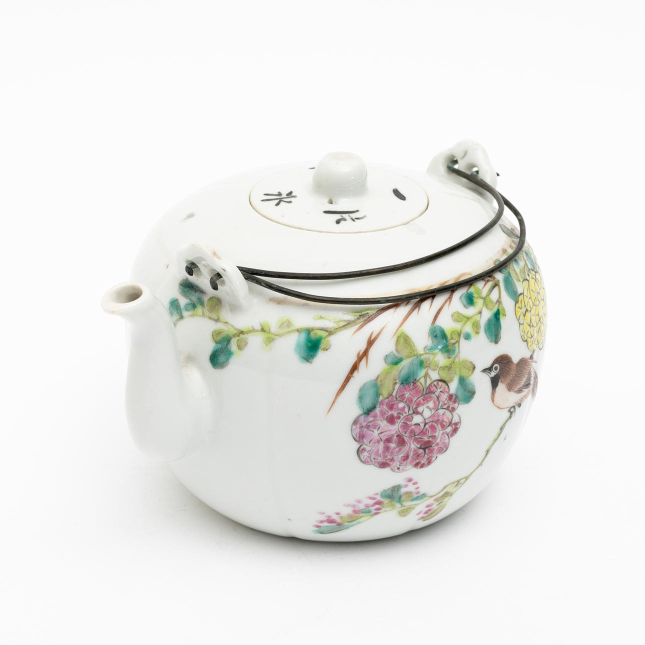Decor with bird and flora. Height approx. 11 cm. Condition Normal wear and tear, surface dirt, breaks/chips on the top of the jug. 311855