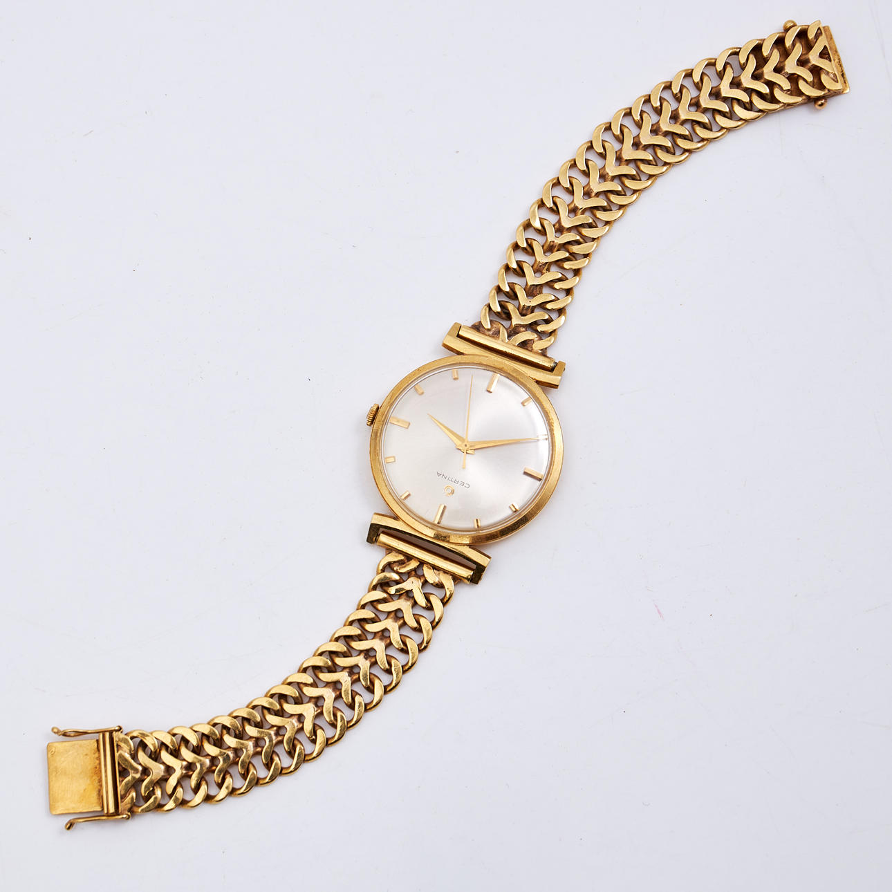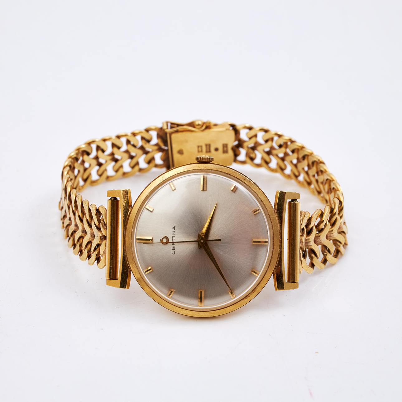 Herringbone link in 18k gold with chest clasp, stamped AMV, Stockholm 1962. Diameter excl. crina approx. 33,5 mm, width link approx. 14 mm, length approx. 20 cm Gross weight approx. 61 g gram. Condition Normal wear and tear, worked at the time of cataloging, no function warranty is provided. 108277