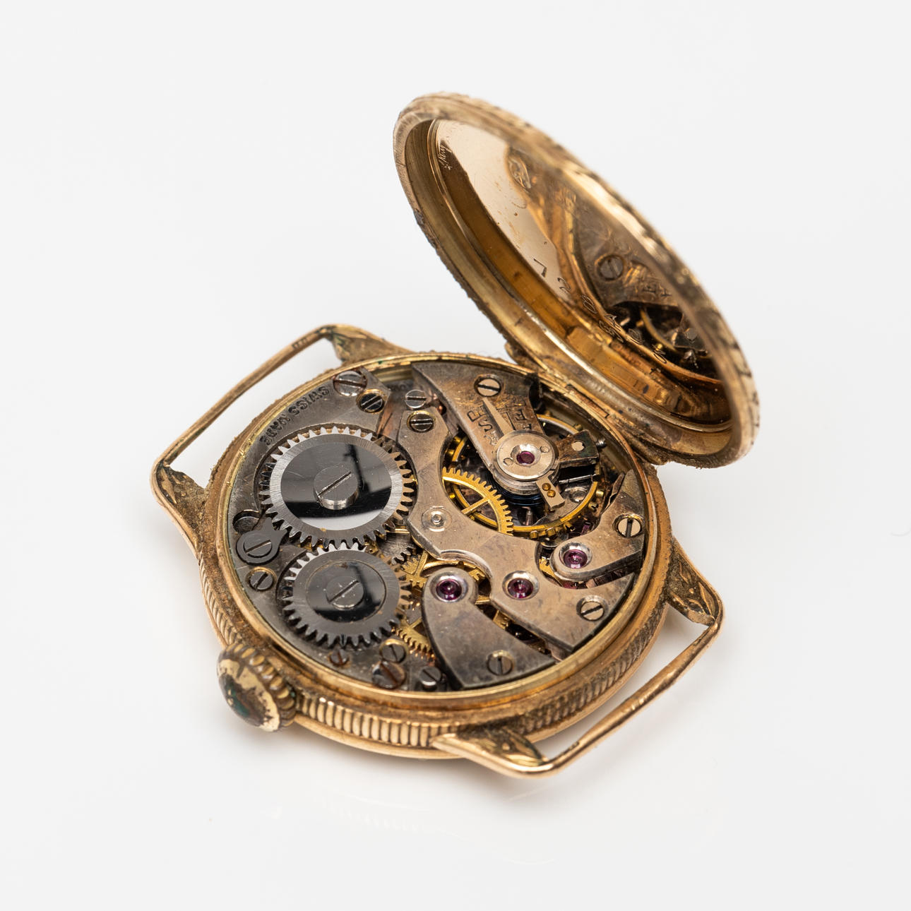 Dial and glass with damage. Minor dents. Crown not gold. Worked at the time of cataloging. No functional warranty is provided.