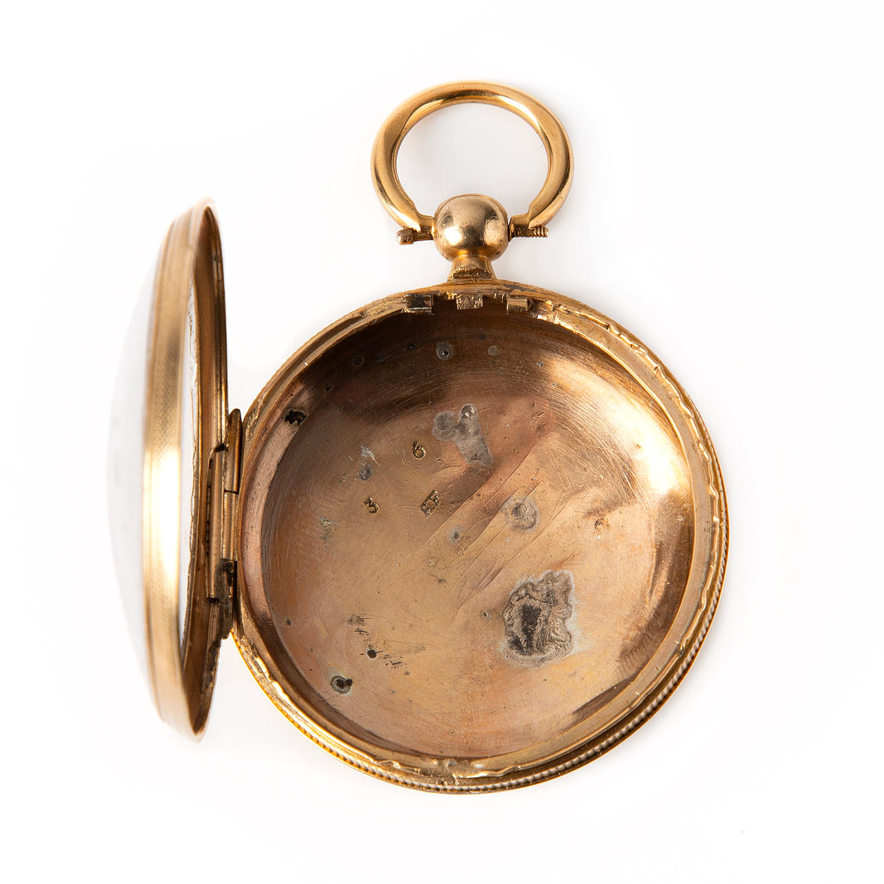A yellow metal pocket watch, France, Switzerland, first part of the 19th century.