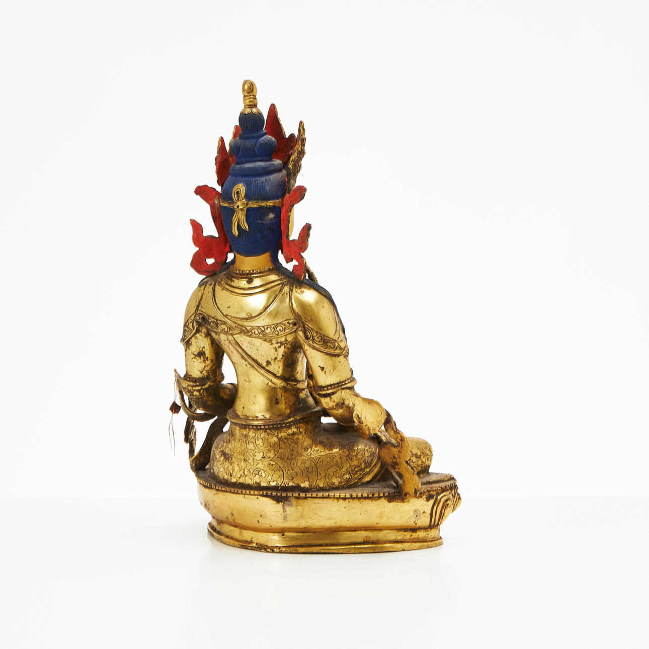 20th century, sitting on lotus throne, partly painted. Height approx. 30 cm. Condition Wear, minor impact damage. 213244